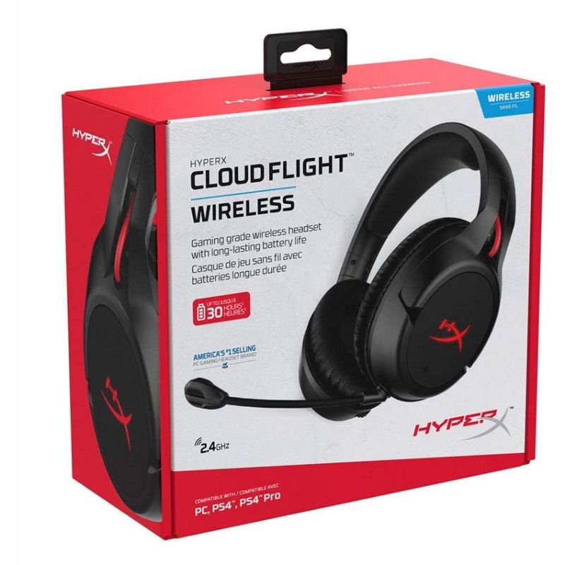Descripción HyperX Cloud Flight. Tipo de producto: Auriculares, Estilo de uso: Diadema, Uso recomendado: Juego. Tecnología de conectividad: Inalámbrico y alámbrico, Frecuencia de banda: 2.4 GHz, Alcance inalámbrico: 20 m. Audifonos: Circumaural, Frecuencia de auricular: 20 - 20000 Hz, Obstrucción: 32 O. Tipo de micrófono: Boom, Frecuencia de micrófono: 100 - 7000 Hz, Sensibilidad de micrófono: -45 dB. Autonomía: 30 h