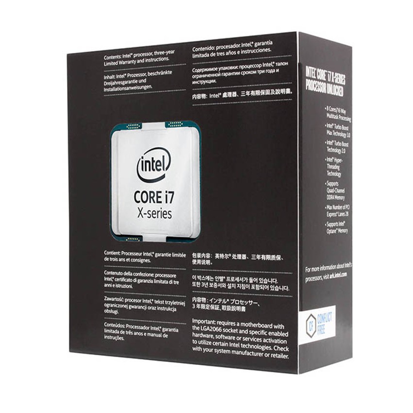 Descripción Intel Intel® Core? i7-7800X X-series Processor (8.25M Cache, up to 4.00 GHz), Core. Familia de procesador: Intel Core X-series, Frecuencia del procesador: 3,5 GHz, Socket de procesador: LGA 2066. Canales de memoria que admite el procesador: Cuadrángulo, Memoria interna máxima que admite el procesador: 128 GB, Tipos de memoria que admite el procesador: DDR4-SDRAM. Potencia de diseño térmico (TDP): 140 W, Set de instrucciones soportadas: AVX 2.0,AVX-512,SSE4.1,SSE4.2, código de procesador: SR3L4. Memoria interna máxima: 131072 MB