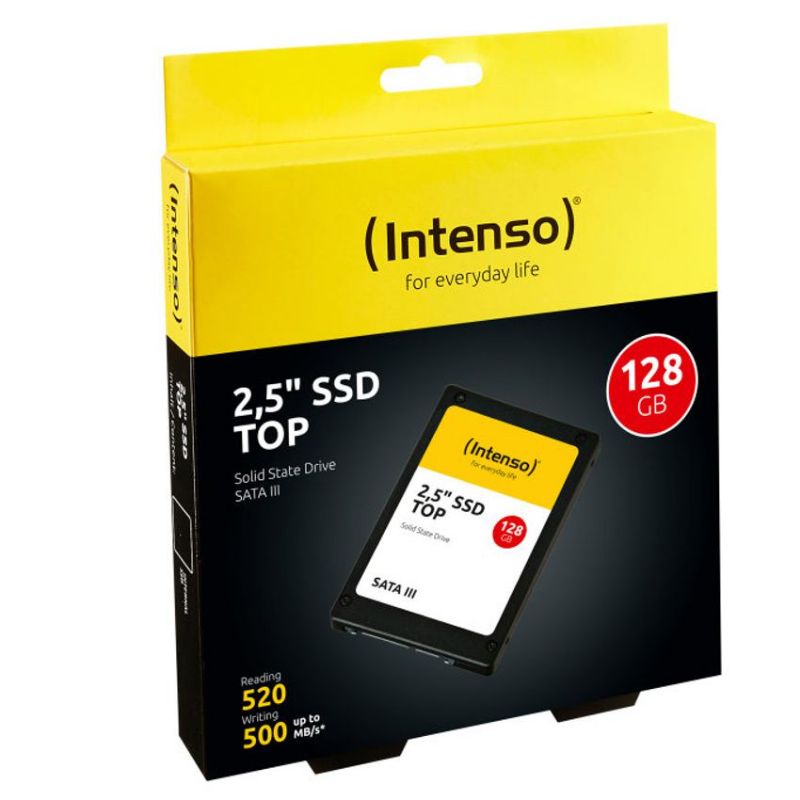Descripción Intenso Top Performance. SDD, capacidad: 128 GB, Factor de forma de disco SSD: 2.5", Velocidad de lectura: 520 MB/s, Velocidad de escritura: 500 MB/s, Velocidad de transferencia de datos: 6 Gbit/s, Componente para: PC/ordenador portátil