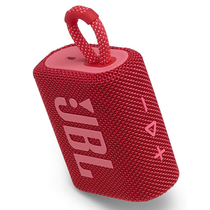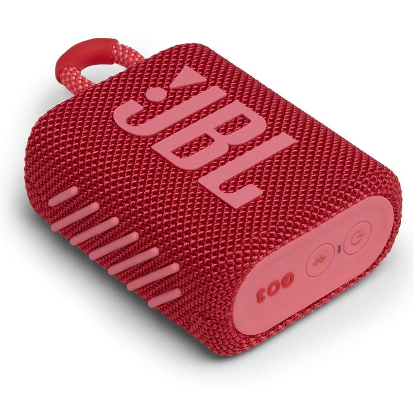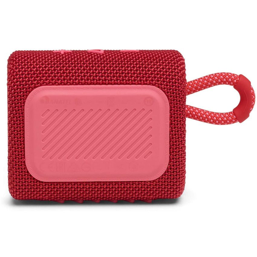 Descripción JBL GO 3 ROT. Potencia estimada RMS: 4,2 W, Rango de frecuencia: 110 - 20000 Hz, Relación señal/ruido (SNR): 85 dB. Tecnología de conectividad: Inalámbrico, Perfiles de Bluetooth: A2DP,AVRCP, Modulación del transmisor Bluetooth: 8DPSK,DQPSK,GFSK. Color del producto: Rojo, Diseño: Rectángulo, Control de volumen: Botones. Uso recomendado: Tablet/Smartphone, País de origen: Vietnam. Tipo de batería: Batería integrada, Tecnología de batería: Polímero de litio, Capacidad de batería (vatio-hora): 2,7 Wh