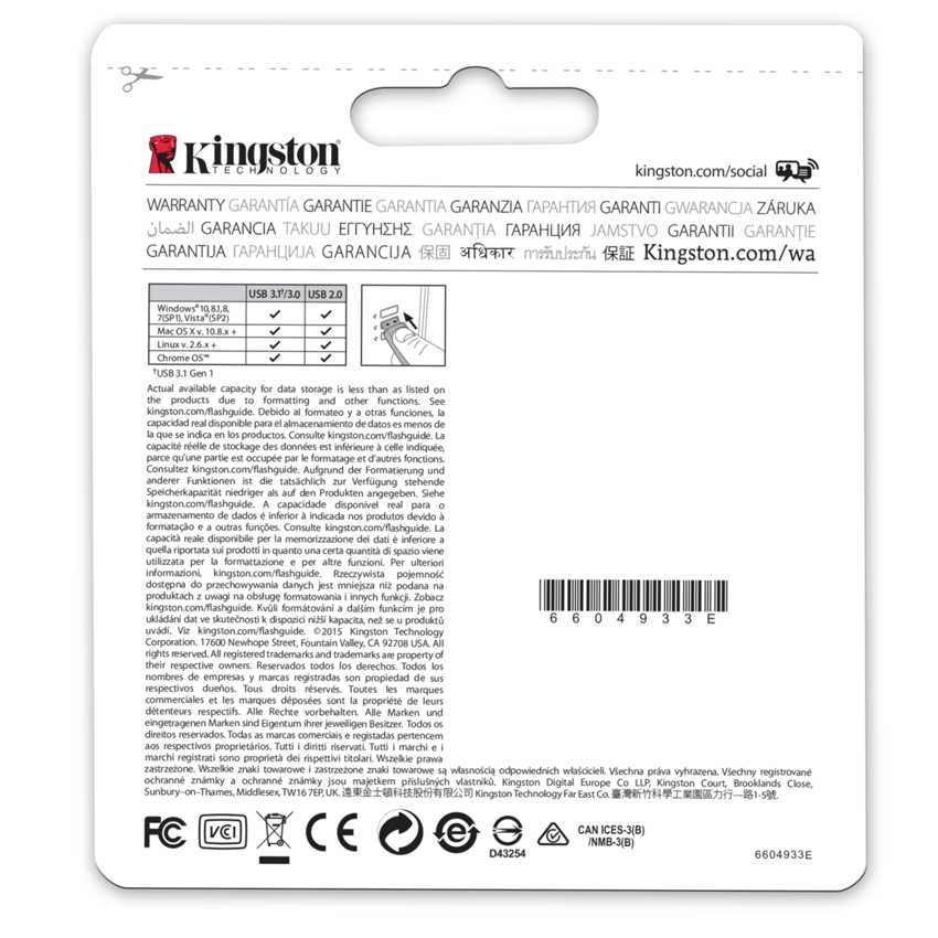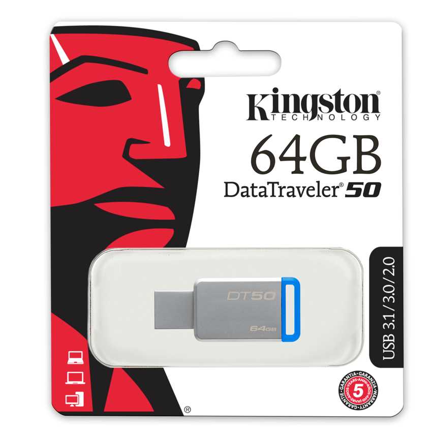 Descripción DataTraveler® 50 es una unidad Flash USB ligera, disponible en distintas capacidades entre 8 GB y 128 GB. El compacto diseño de la unidad sin capuchón incorpora una carcasa metálica, con códigos de colores en función de su capacidad. La rapidez de la unidad USB 3.1 Gen 1 (USB 3.0) garantiza la transferencia rápida y sencilla de datos. Retrocompatible con los actuales puertos USB 2.0, la unidad también puede personalizarse. La unidad DT 50 está respaldada por una garantía de 5 años, asistencia técnica gratuita y la legendaria fiabilidad de Kingston®.