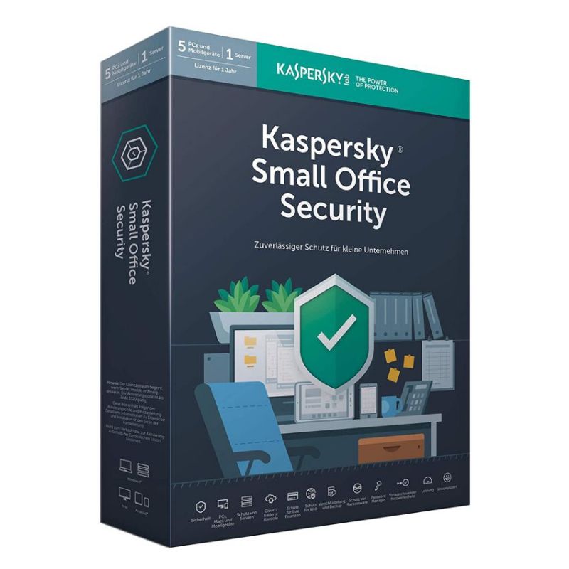 Descripción Kaspersky Lab Small Office Security 7. Cantidad de licencia: 10 licencia(s), Número de años: 1 año(s), Tipo de licencia: Licencia básica. Espacio mínimo de almacenamiento del disco: 1150 MB, RAM mínima: 1024 MB. Tipo de software: Caja