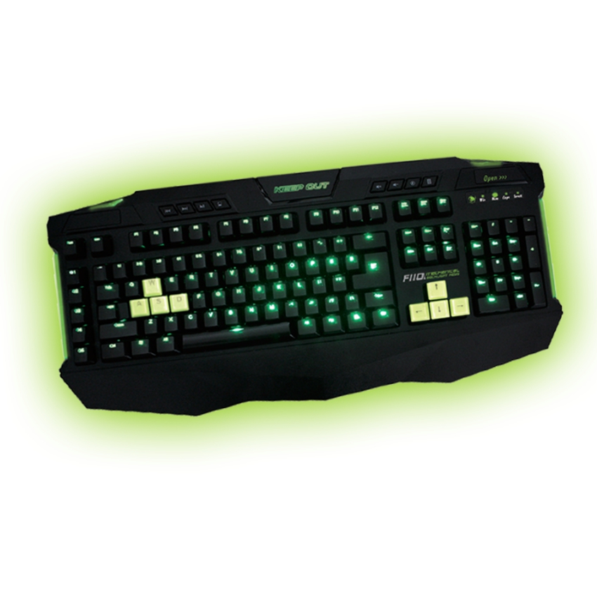 El F110 es nuestro teclado mecánico más novedoso, con teclas totalmente mecánicas que actúan a una distancia óptima y ofrecen una velocidad y capacidad de respuesta inigualables. Con su software adicional podrás grabar tus macros preferidas para que la experiencia del juego sea único, además con sus 8 teclas multimedia, obtendrás un control total de tu equipo. Dispone de teclas de retroiluminación individual lo que hace perfecto para situaciones de baja luminosidad. También contiene un puerto adicional USB y entrada Jack de audio y micrófono. Con el F110 obtendrás la capacidad de respuesta y control necesaria para dejar a tu enemigo K.O.