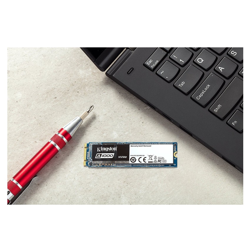 Descripción Las unidades de estado sólido A1000 de Kingston son una solución básica de NVMe? PCIe con un diseño M.2 de una cara de 22 x 80 mm. Su diseño es ideal para los portátiles más delgados y para sistemas con espacio limitado. Gracias a la interfaz NVMe? PCIE Gen 3.0 x2, su controlador Phison E8 de 3 canales y su memoria Flash NAND 3D, esta unidad alcanza velocidades de lectura y escritura de hasta 1.500 MB/s y 1.000 MB/s1, respectivamente. Son el doble de rápidas que las SSD basadas en SATA, y 20 veces más rápidas que las unidades de disco duro convencionales. Se caracterizan por su excepcional capacidad de respuesta, su latencia ultrabaja y su rendimiento.