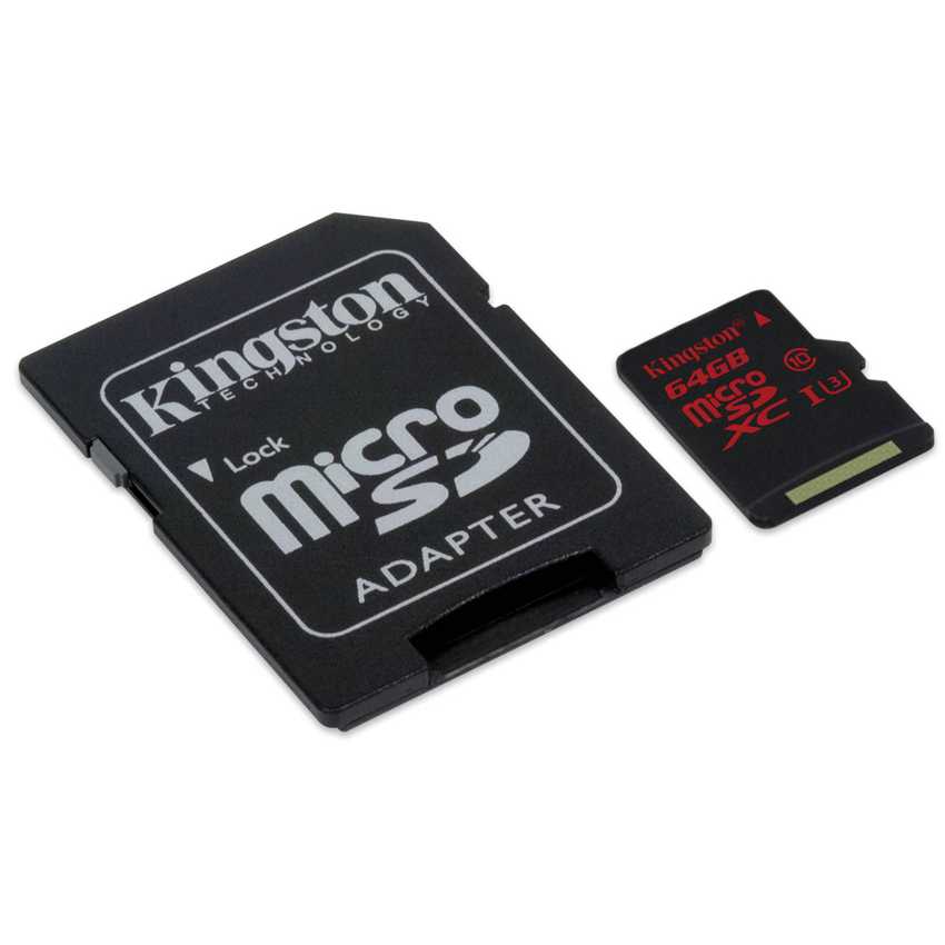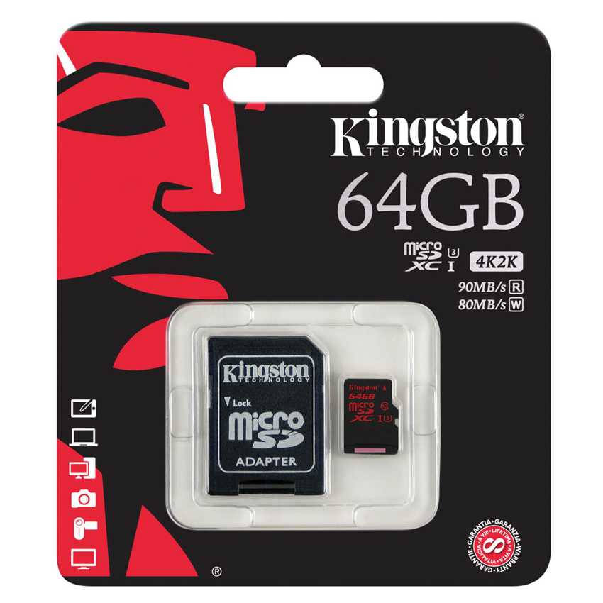 Descripción La tarjeta microSDHC/SDXC UHS-I U3 (bus de velocidad ultra rápida, velocidad clase 3) Flash de Kingston presenta unas velocidades impactantes que permiten a los usuarios capturar videos 3D y 4K2K Full HD a 1080p y Ultra HD a 2160p obteniendo una calidad como en el cine. Resulta una combinación perfecta para usarla en dispositivos de alto rendimiento y formato pequeño como pueden ser smartphones o videocámaras portátiles. Con unas velocidades de lectura de 90MB/s y escritura de 80MB/s hace que editar y subir archivos sea más rápido, especialmente si se usa con lectores de tarjeta USB 3.0 de Kingston, incluidos MobileLite G4 y Media Reader.