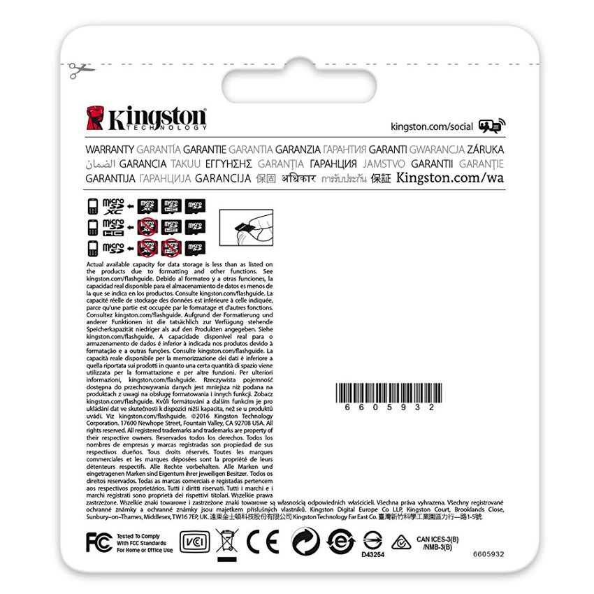 DescripciónIdeales para aplicaciones industriales y de condiciones extremas. Las temperaturas nominales de operación de las unidades Industrial Temperature microSD UHS-I de Kingston abarcan el rango entre -40 °C y 85 °C, lo que las hace adecuadas para entornos hostiles. Su amplio rango de temperaturas nominales de operación significa que resisten condiciones de calor extremo en el desierto y en situaciones de pruebas y de mediciones en las que las tarjetas microSD estándar pudieran arrojar fallas. Asimismo, su resistencia a las bajas temperaturas permite su uso en condiciones climáticas por debajo del punto de congelación, en aplicaciones en las que se dejen a la intemperie equipos y maquinarias durante períodos prolongados de tiempo. La elevada cifra nominal de ciclos de inserción de estas tarjetas es ideal para aplicaciones en las que se tenga acceso y se inserten y extraigan de los dispositivos host con mucha frecuencia, y su tecnología MLC NAND permite la escritura de grandes volúmenes de datos a ellas. Kingston® hace extensas pruebas a estas tarjetas durante sus fases de pre-producción y de calificación de nuevos productos. Las tarjetas deben superar pruebas de ciclos térmicos, con pruebas de intervalos a diversas temperaturas extremas; compensaciones fuertes de humedad-temperatura, que incluyen varios centenares de horas de ensayos a efectos de asegurar la durabilidad a distintos niveles de humedad; y pruebas en cámaras térmicas de amplios rangos de temperatura. Además, se comprueba la impermeabilidad*, la resistencia a temperaturas extremas**, la resistencia a impactos y vibraciones*** y la resistencia a los rayos X****. De modo que usted puede estar tranquilo en cuanto a que sus fotografías, videos y otros archivos importantes estarán bien protegidos. Dada las velocidades de hasta 90 MB/s (lectura) y de 45 MB/s (escritura) de las unidades UHS-I de Clase U1 de velocidad, estas tarjetas son ideales para aplicaciones que exijan un mayor ancho de banda durante la grabación de grandes conjuntos de datos. Las más altas velocidades sostenidas de escritura de estas tarjetas aseguran la integridad de los datos, mediante la reducción de las perturbaciones en la transmisión, y también ofrecen lapsos más breves de carga al transferir archivos a computadoras PC. Es el formato de tarjetas SD más pequeño disponible, y es la opción estándar de almacenamiento expandible para muchos dispositivos GPS, tablets, teléfonos inteligentes y dispositivos industriales, y con el adaptador incluido, se pueden utilizar en dispositivos host SDHC/SDXC de tamaño estándar. *Certificación IEC/EN 60529 IPX7 en cuanto a la protección en condiciones de inmersión continua de hasta 30 minutos de duración a profundidades de hasta 1 metro. **Resistencia a temperaturas comprendidas en el rango -40 °C a 85 °C ***Con base en el método de prueba MIL-STD-883H, METHOD 2002.5 (norma militar). ****Certificación ISO 7816-1 en cuanto a la protección contra irradiaciones de rayos X de 0.1 Gy en ambos lados de la tarjeta. - Tarjetas de categoría industrial ideales para aplicaciones industriales y de condiciones extremas - Sometidas a extensas pruebas a efectos de aplicaciones industriales - UHS-I de Clase U1 de velocidad - De pequeño tamaño.EspecificacionesCapacidad: 64 GBTipo de tarjeta flash: MicroSDXCClase de memoria flash: Class 10Velocidad de lectura: 90 MB/sVelocidad de escritura: 45 MB/sTipo de memoria interna: UHS-ISistema operativo Windows soportado: SiSistema operativo MAC soportado: SiSistema operativo Linux soportado: SiColor del producto: NegroFunciones de protección: Resistente a la congelación, Resistente al calor, Resistente a golpes, Temperature proof, Vibration proof, Resistente al agua, A prueba de rayos XCertificación: FCC, VCIVoltaje de memoria: 3.3 VIntervalo de temperatura operativa: -40 - 85 °CDimensiones del adaptador SD (A x P): 24 x 32 x 2,1 mmAncho: 1,1 cmProfundidad: 1 mmAltura: 1,5 cmCantidad por paquete: 1Tipo de embalaje: AmpollaSistemas de archivos soportados: exFAT