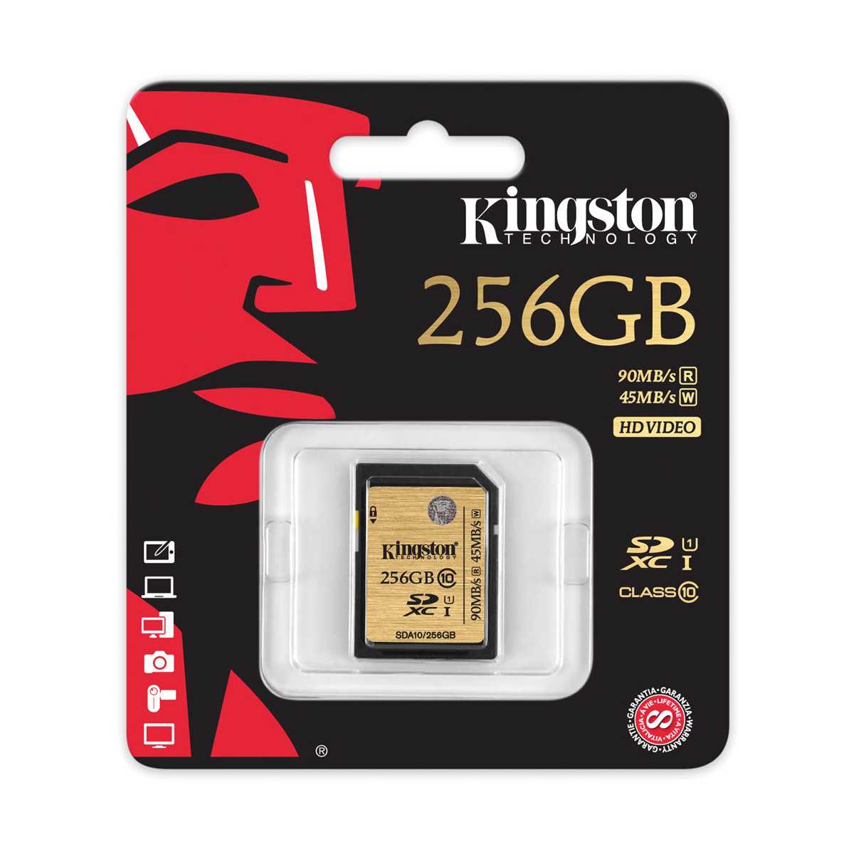 La tarjeta Class 10 UHS-I es compatible con SDHC (16GB, 32GB) y SDXC (64 GB, 128GB y 256GB) y tiene una garantía de por vida, soporte técnico gratuito y la legendaria fiabilidad de Kingston®.