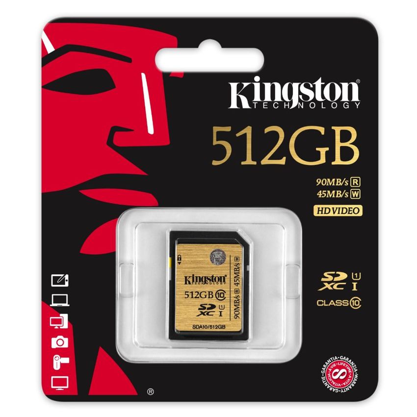 Kingston SD XC 512 GB UHS-I Clase 10 Cod. Producto: A-15375   ||  Fabricante: KINGSTON Part Number: SDA10/512GB    Stock: 0 Unidades Entrega en el Día ver condiciones Envio: Gratis Descatalogado