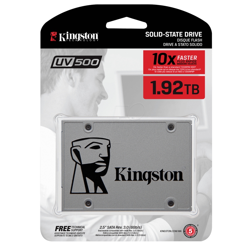 La familia UV500 de unidades de estado sólido (SSD) de Kingston mejoradrásticamente la capacidad de respuesta de su sistema existente con increíblestiempos de arranque, carga y transferencia en comparación con los discos durosmecánicos. Apoyadas en un controlador Marvell 88SS1074 aunado a memoria Flash NAND 3D, ofrecen velocidades de lectura y escritura de hasta 520 MB/s y 500 MB/s* respectivamente. Estas unidades SSD son 10 veces más rápidas que los discos duros tradicionales y proveen un mejor rendimiento, velocidad de respuesta ultrarrápida en el procesamiento multitareas y una aceleración general del sistema. Las UV500 suministran protección de los datos de extremo a extremo, y admiten cifrado AES de 256 bits basado en hardware además de soluciones TCG Opal 2.0 de gestión de la seguridad.