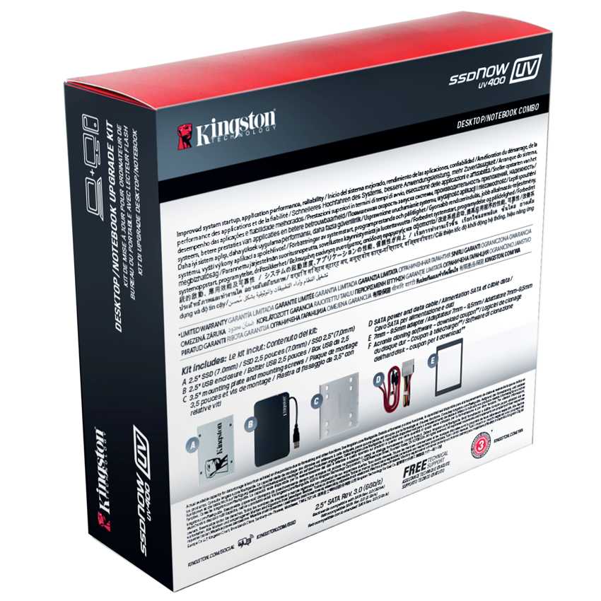 Descripción Insufle nueva vida a su sistema. La unidad SSDNow UV400 de Kingston incorpora un controlador Marvell de 4 canales, que permite alcanzar velocidades increíbles y un rendimiento mucho mayor que un disco duro mecánico. Mejorará drásticamente la capacidad de respuesta de su actual sistema, además de ser 10 veces más rápida que un disco duro de 7200 RPM*.