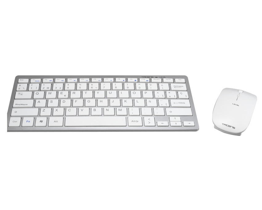 Teclado inalámbrico compacto ultrafino y multimedia fabricado con los mejores materiales junto al nuevo ratón inalámbrico Tacens de diseño ultra-plano y ligero con un sensor óptico profesional de última generación con cambio de resolución al instante de 1200-2000DPI.