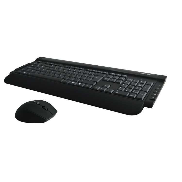 Kit de teclado y ratón con tecnología wireless. Incluye 9 teclas multimedia para controlar el sonido además de un botón en el ratón para cambiar los dpis al instante.