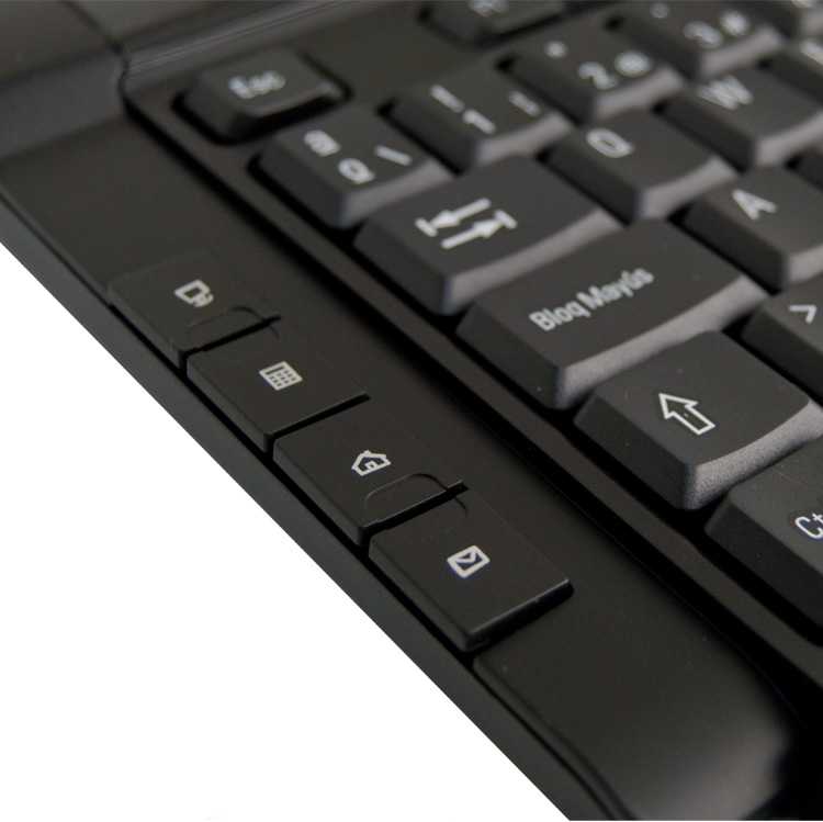 · Kit de teclado y ratón con tecnología wireless · DPIs del ratón configurables a 1000 o 1600 dpi · 9 teclas de acceso directo a opciones multimedia como música o navegación · Ratón con sensor óptico y 6 botones · Compatible con Windows 7