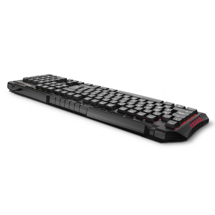 Este teclado de membrana, con teclas de perfil alto, posee 10 teclas multimedia, para acceder a distintas funciones, así como tecla de bloqueo de Windows. Cuenta también con tecnología anti-ghosting, con la que podrás pulsar hasta 19 teclas a un mismo tiempo, pudiendo hacer cualquier acción con total libertad. Por otro lado, mediante una sencilla y fácil combinación, podrás intercambiar las teclas WASD con las de dirección.