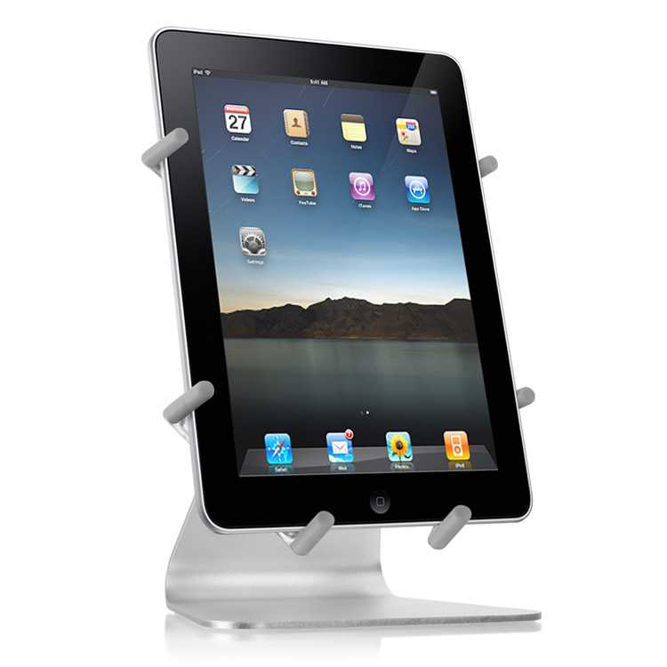 Este soporte con aspecto sofisticado y con un estilo moderno y único, ha sido diseñado a medida para el Apple iPad y otros e-books. Con una base firme, 6 brazos de goma y la almohadilla de silicona, se consigue el mejor soporte para leer, ojear y jugar con el iPad.