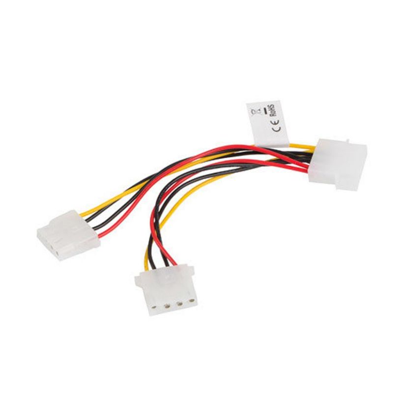 Especificaciones Características Conector 1 Molex (4-pin) Factor de forma de conector 1 Derecho Conector 2 2 x Molex (4-pin) Factor de forma de conector 2 Derecho Color del producto Negro, Rojo, Amarillo Género del conector Macho/Hembra Longitud de cable 0,15 m Utilizar con Disco duro Peso y dimensiones Peso 16 g