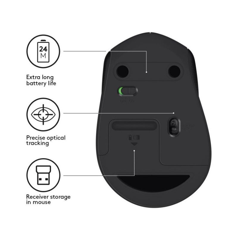 DURACIÓN DE PILAS DE 24 MESES Gracias al diseño para ahorrar energía, tardarás más en cambiar las pilas. M330 SILENT PLUS entra automáticamente en estado de suspensión cuando no se está usando.