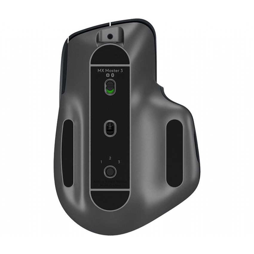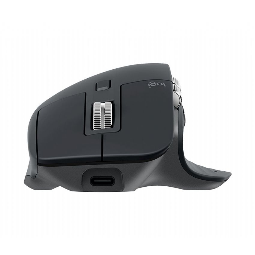 Descripción Logitech MX Master 3. Factor de forma: mano derecha. Tecnología de detección de movimientos: Laser, Interfaz del dispositivo: RF inalámbrica + Bluetooth, Resolución de movimiento: 4000 DPI, Tipo de botones: Botones presionados, Cantidad de botones: 7, Tipo de desplazamiento: Rueda. Fuente de energía: Baterías. Trabaja en cualquier superficie. Color del producto: Grafito