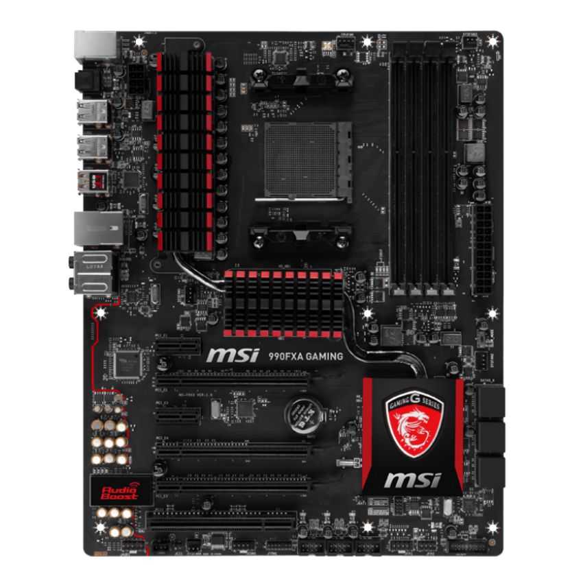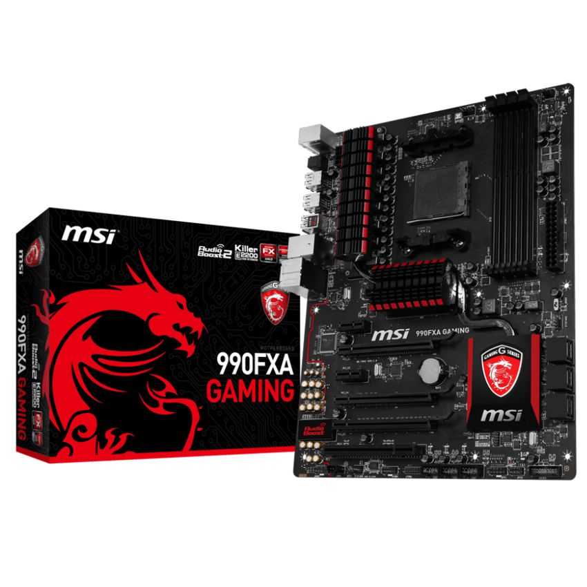 Descripción MSI 990FXA Gaming. tipos de memoria compatibles: DDR3-SDRAM, Tipo de ranuras de memoria: DIMM, Canales de memoria: Dual. Familia de procesador: AMD, Procesador compatible: Athlon II, Phenom FX, Sempron, Socket de procesador: Socket AM3+. Interfaces de unidad de disco duro soportadas: Serial ATA III. Controlador LAN: Bigfoot Killer E2205, Tipo de interfaz ethernet: Gigabit. Componente para: PC, Familia de componentes de tarjeta madre: AMD, Circuito integrado de tarjeta madre: AMD 990FX