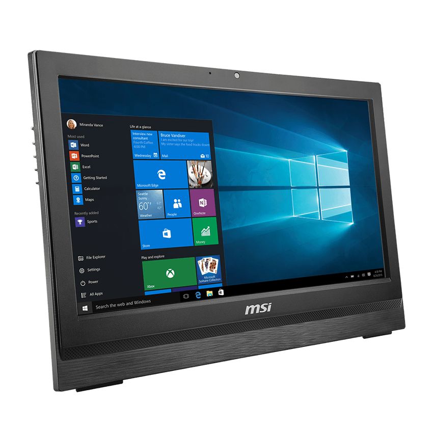Descripción MSI PRO 20 6M-016XEU, Wind Top. Resolución de la pantalla: 1600 x 900 Pixeles, Tipo HD: HD+, Tecnología táctil: Dual-touch. Familia de procesador: Intel Pentium G, Modelo del procesador: G4400, Tipo de cache en procesador: Smart Cache. Tipo de memoria interna: DDR4-SDRAM, Tipo de ranuras de memoria: SO-DIMM, Disposición de la memoria: 1 x 4 GB. Unidad de almacenamiento: Unidad de disco duro, Tarjetas de memoria compatibles: MMC, Memoria extraíble, SD. On-board graphics adapter family: Intel HD Graphics, Modelo de gráficos en tarjeta: Intel HD Graphics 510, Adaptador de tarjeta grafica a bordo: 0x1902
