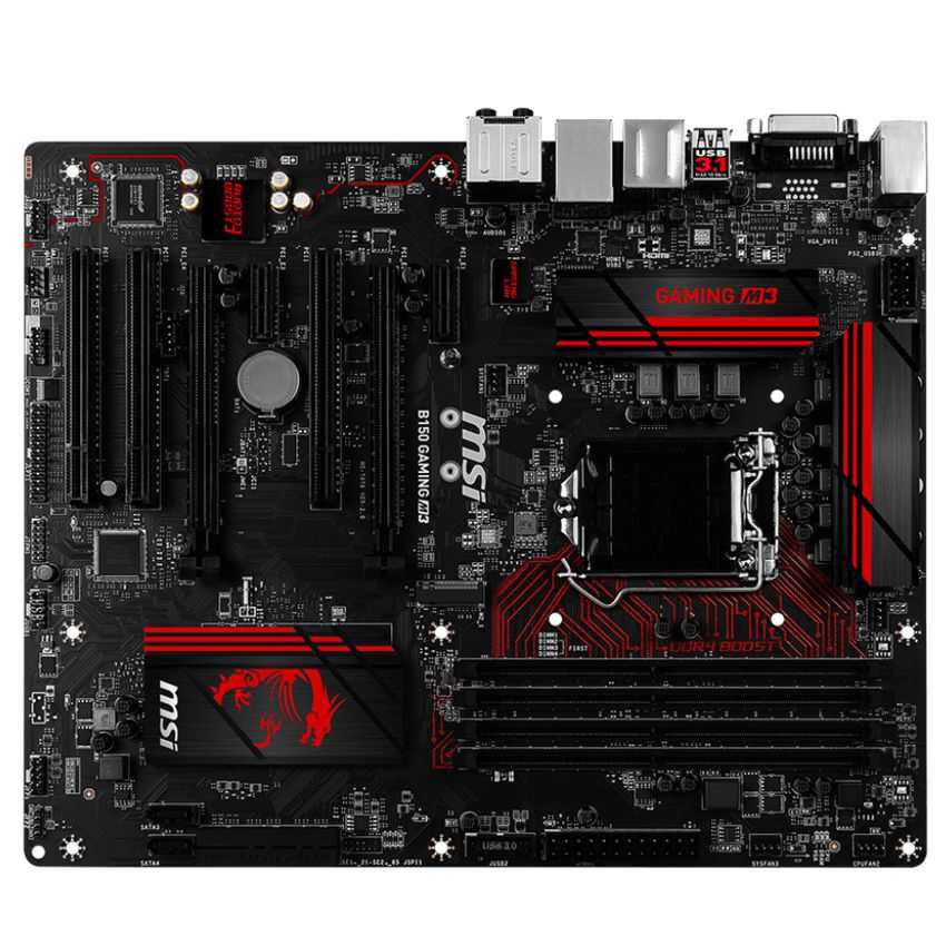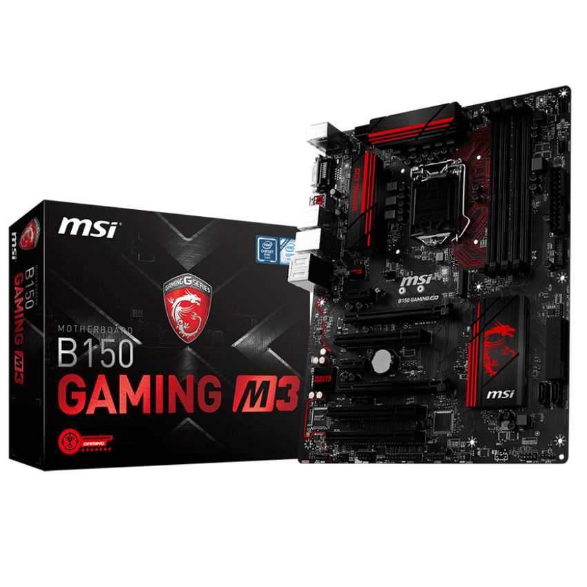 Descripción MSI B150 Gaming M3. tipos de memoria compatibles: DDR4-SDRAM, Tipo de ranuras de memoria: DIMM, Canales de memoria: Dual. Familia de procesador: Intel, Procesador compatible: Core i5, Core i7, Celeron, Core i3, Socket de procesador: LGA1151. Interfaces de unidad de disco duro soportadas: Serial ATA III, M.2. Controlador LAN: Atheros Killer E2400, Tipo de interfaz ethernet: Rápido, Gigabit. Componente para: PC, Familia de componentes de tarjeta madre: Intel, Circuito integrado de tarjeta madre: Intel B150