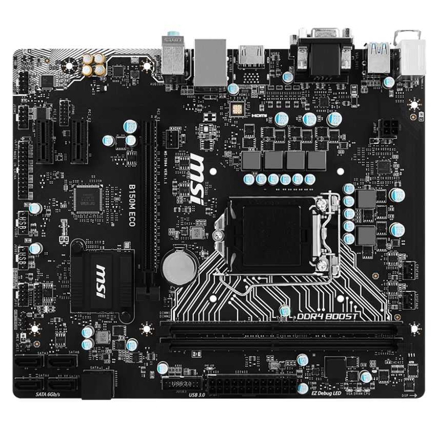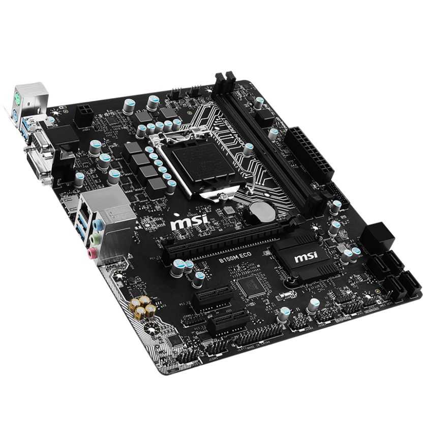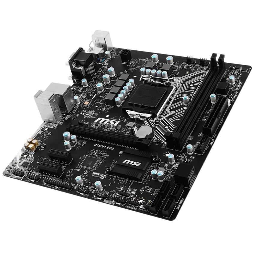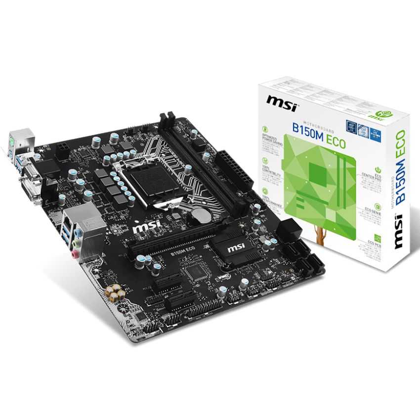 Descripción MSI B150M ECO M-ATX. tipos de memoria compatibles: DDR4-SDRAM, Tipo de ranuras de memoria: DIMM, Canales de memoria: Dual. Familia de procesador: Intel, Procesador compatible: Core i3, Core i5, Core i7, Socket de procesador: LGA1151. Interfaces de unidad de disco duro soportadas: Serial ATA III. Controlador LAN: Intel I219-V, Tipo de interfaz ethernet: Gigabit Ethernet. Componente para: PC, Familia de componentes de tarjeta madre: Intel, Circuito integrado de tarjeta madre: Intel B150