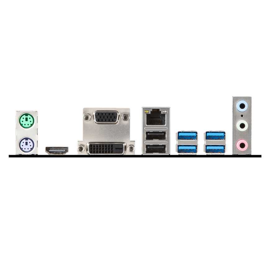 Especificaciones tipos de memoria compatibles: DDR4-SDRAM Tipo de ranuras de memoria: DIMM Número de ranuras de memoria: 4 Canales de memoria: Dual ECC: Si Velocidades de reloj de memoria soportadas: 2133 MHz Memoria interna máxima: 64 GB Memoria sin buffer: Si Familia de procesador: Intel Procesador compatible: Celeron, Pentium, Core i3, Core i5, Core i7 Socket de procesador: LGA1151 Máx.número de procesador SMP: 1 USB 2.0, conectores: 2 Interfaces de unidad de disco duro soportadas: Serial ATA III Conector de ventilador CPU: Si Conector de potencia ATX (24 pines): Si Conector de instrusión a chasis: Si Conector de audio en panel frontal: Si Conector TPM: Si Número de conectores SATA III: 6 Conector paralelo: Si Cabecera de puerto serie: 1 Cantidad de puertos USB 2.0: 2 Cantidad de puertos tipo A USB 3.1 (3.1 Gen 2): 4 Ethernet LAN (RJ-45) cantidad de puertos: 1 Puerto de ratón PS/2: 2 Salidas para auriculares: 1 Micrófono, jack de entrada: Si Cantidad de puertos VGA (D-Sub): 1 Cantidad de puertos DVI-D: 1 Número de puertos HDMI: 1 Ethernet: Si Controlador LAN: Realtek RTL8111H Tipo de interfaz ethernet: Rápido, Gigabit Componente para: PC Familia de componentes de tarjeta madre: Intel Circuito integrado de tarjeta madre: Intel B150 Tarjeta madre, factor de forma: Micro ATX Canales de salida de audio: 7.1 Sistema de audio: HD Audio Intel® Extreme Memory Profile (XMP): Si PCI Express x1 (Gen 3.x) ranuras: 3 PCI Express x16 Gen (3.x) ranuras: 1 Jumper Clear CMOS: Si Ancho: 23,5 cm Profundidad: 22,8 cm