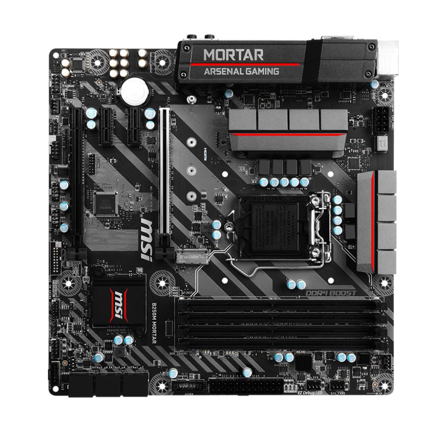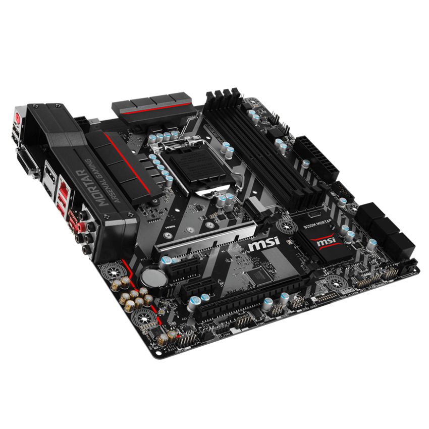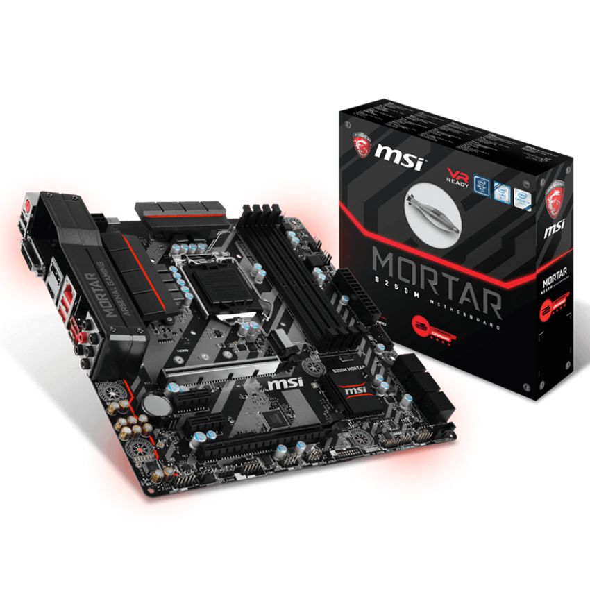 Descripción MSI B250M MORTAR. tipos de memoria compatibles: DDR4-SDRAM, Tipo de ranuras de memoria: DIMM, Canales de memoria: Dual. Familia de procesador: Intel, Procesador compatible: Celeron, Core i3, Core i5, Core i7, Pentium, Socket de procesador: LGA1151. Controlador LAN: Intel I219-V, Tipo de interfaz ethernet: Gigabit Ethernet. Componente para: PC, Familia de componentes de tarjeta madre: Intel, Circuito integrado de tarjeta madre: Intel B250. Soporte para proceso paralelo: 2-Way CrossFireX, Máxima resolución: 4096 x 2160 Pixeles