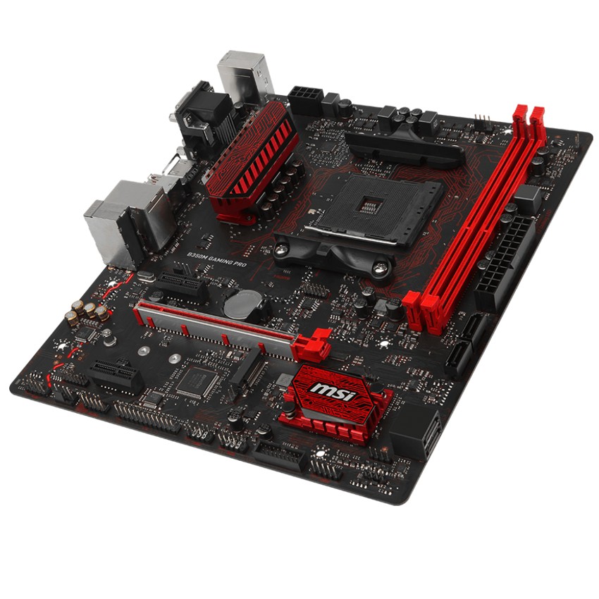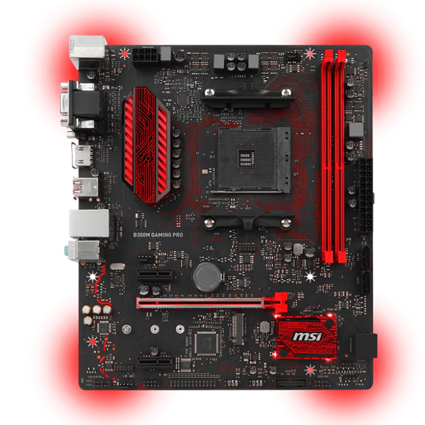 Descripción MSI B350M GAMING PRO. tipos de memoria compatibles: DDR4-SDRAM, Tipo de ranuras de memoria: DIMM, Velocidades de reloj de memoria soportadas: 1866,2133,2400,2667,2933,3200 MHz. Familia de procesador: AMD, Procesador compatible: AMD A,Athlon,Ryzen, Socket de procesador: Socket AM4. Controlador LAN: Realtek RTL8111H, Tipo de interfaz ethernet: Fast Ethernet,Gigabit Ethernet. Componente para: PC, Familia de componentes de tarjeta madre: AMD, Circuito integrado de tarjeta madre: AMD B350. Tipos de BIOS: UEFI