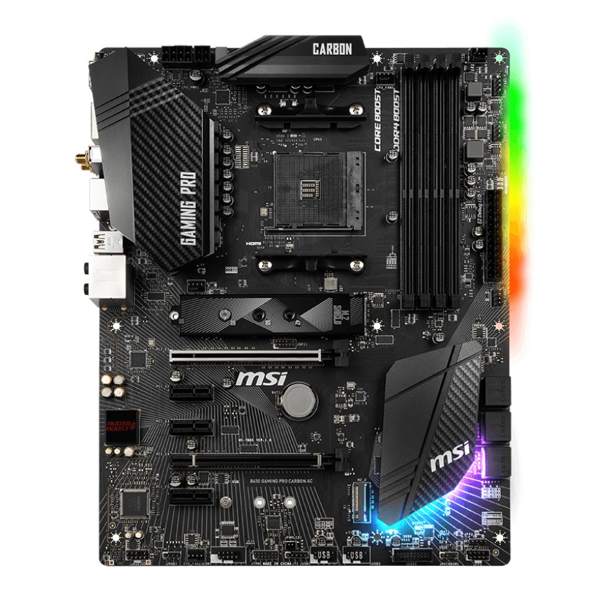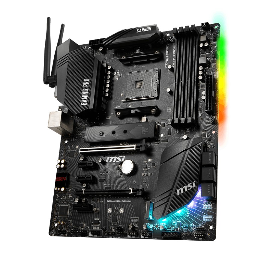 Especificaciones Memoria - Compatibilidad : DDR4-SDRAM - Frecuencia : 1866/ 2133/ 2400/ 2667Mhz (by JEDEC) 2667/ 2800/ 2933/ 3000/ 3066/ 3200/ 3466 MHz (by A-XMP OC MODE) - Ranuras : 4 - Canales de memoria : Dual - Capacidad por ranura : 16GB - Memoria máxima admitida : 64 GB Procesador Compatible - Procesador : AMD® RYZEN? Conectores Internos I/O - USB 2.0 : 2 - USB 3.1 : 1 - Conectores SATA 6Gb/s : 6 - Conector de ventilador CPU : Si - Conector de potencia ATX (24 pines) : Si - Conector de instrusión a chasis : Si - Conectores a ventilador de chasis : 4 - Conector de audio en panel frontal : Si - Conector TPM : Si Ranuras M.2 (M) : 2 Panel trasero Puertos de I/O - Cantidad de puertos USB 2.0 : 2 - Puertos USB 3.1 : 2 - USB 3.1 Gen2 Type-A + C : 1 - Ethernet LAN (RJ-45) : 1 - Puerto de ratón PS/2 : 1 - Salidas para auriculares : 1 - Micrófono, jack de entrada : Si - DisplayPorts : 1 - HDMI : 1 - Wi-Fi / Bluetooth : 2 Características - Chipset : AMD® B450 Chipset - Tipo : ATX - Canales de salida de audio : 7.1 canales Ranuras de expansión - PCIe 3.0 x16 slot (PCI_E1) : 1 - PCIe 2.0 x16 slo : 1 - PCIe 2.0 x1 slots : 3 Dimensiones - 30.5 cm x 24.4 cm - Formato : ATX