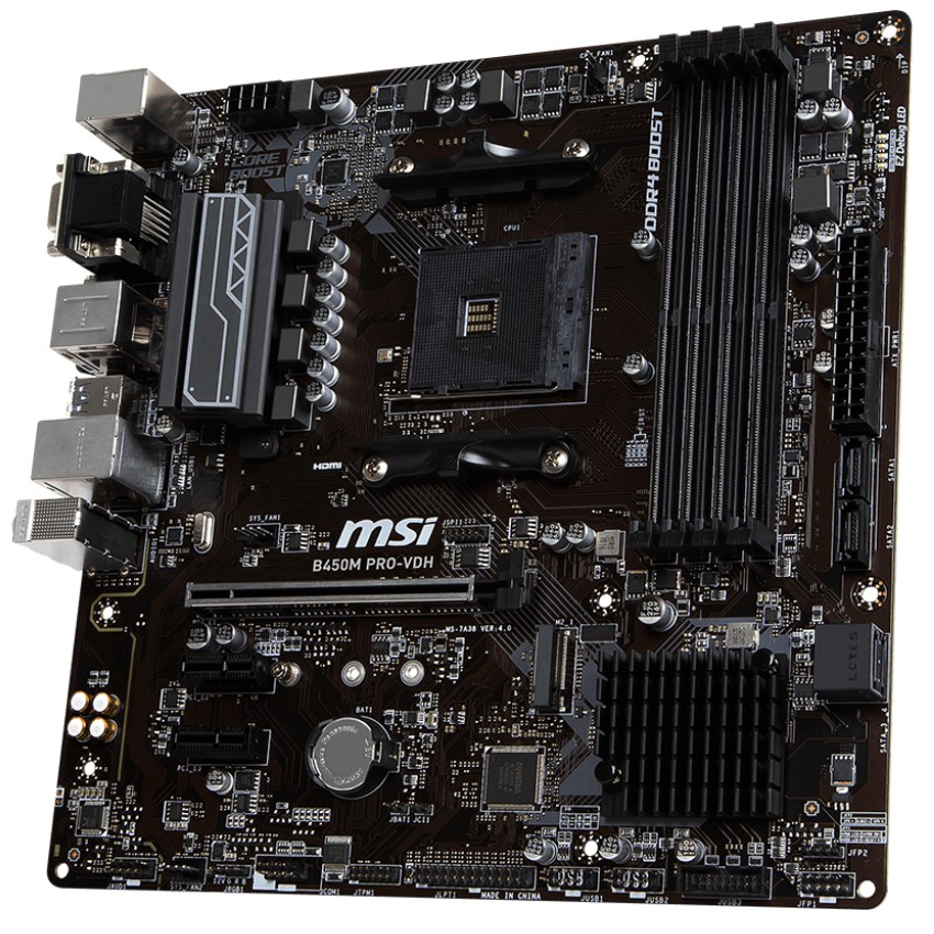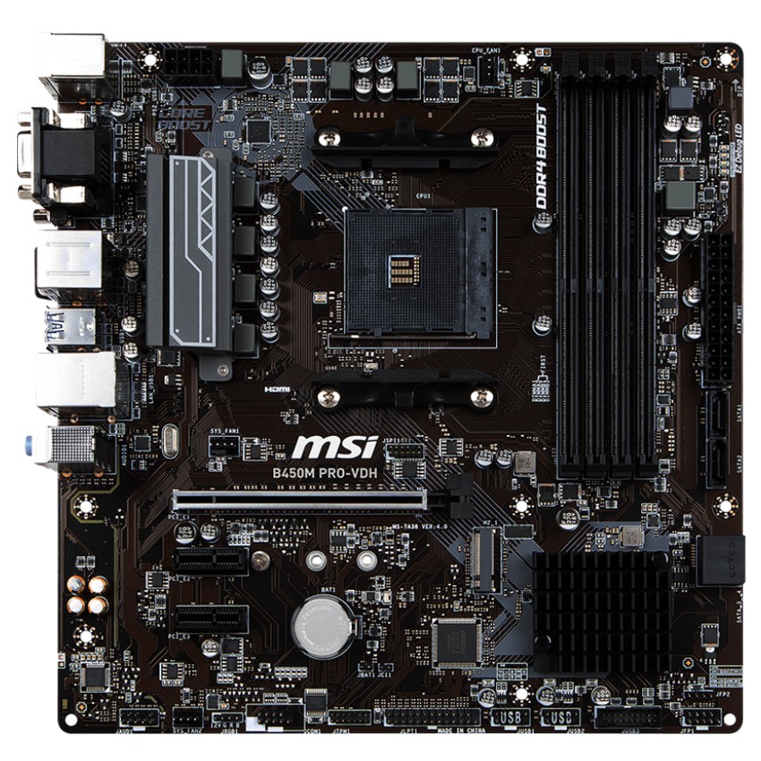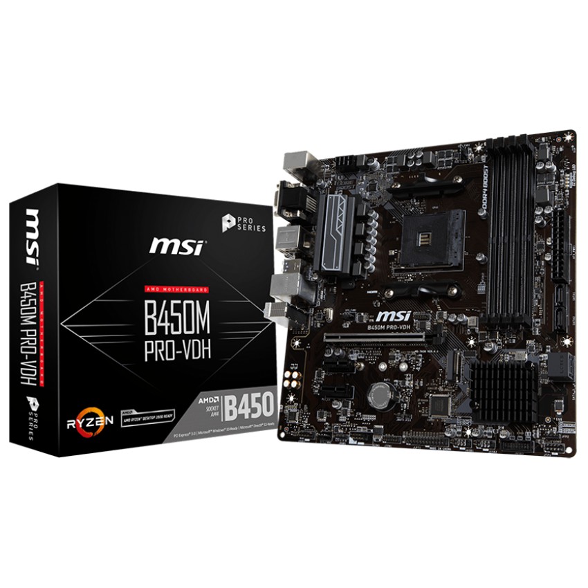 Especificaciones SOCKET: AM4 CPU (MAX SUPPORT): Ryzen 7 CHIPSET: AMD® B450 Chipset DDR4 MEMORY - 1866/ 2133/ 2400/ 2667Mhz (by JEDEC) - 2667/ 2800/ 2933/ 3000/ 3066/ 3200/ 3466 MHz (by A-XMP OC MODE) MEMORY CHANNEL: Dual DIMM SLOTS: 4 MAX MEMORY (GB): 64 PCI-E X16: 1 PCI-E GEN: Gen3 PCI-E X1: 2 SATAIII: 4 M.2 SLOT: 1 RAID: 0/1/10 TPM (HEADER): 1 LAN: 1(Realtek® 8111H) USB 3.1 PORTS (FRONT): 2(Gen1) USB 3.1 PORTS (REAR): 4(Gen1) Type A USB 2.0 PORTS (FRONT): 4 USB 2.0 PORTS (REAR): 4 SERIAL PORTS(FRONT): 1 AUDIO PORTS (REAR): 3(Realtek® ALC892 Codec) DVI-D: 1 VGA: 1 HDMI: 1 DIRECTX: 12 FORM FACTOR: M-ATX OPERATING SYSTEM - Support for Windows® 10 64-bit - Support for Windows® 7 64-bit - * To support Windows® 7 64-bit, you must install an AMD Pinnacle Ridge & Summit Ridge CPU.