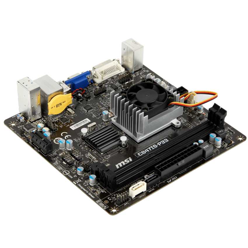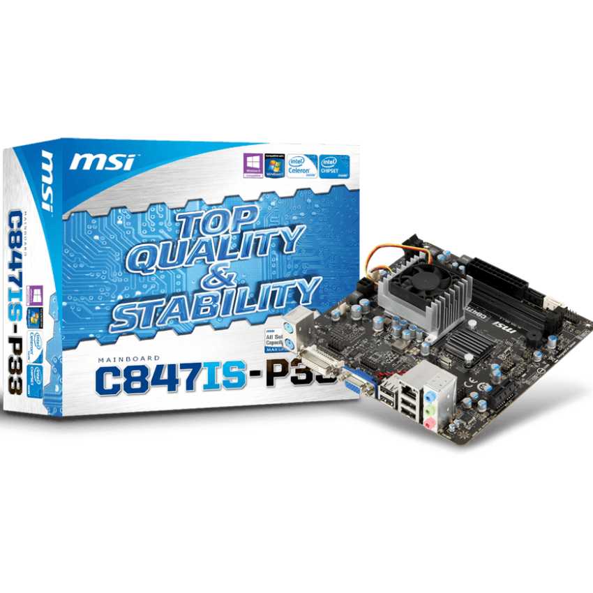 DescripciónMSI C847IS-P33. tipos de memoria compatibles: DDR3-SDRAM, Tipo de ranuras de memoria: DIMM, Memoria interna: 16 GB. Familia de procesador: Intel, Procesador compatible: Celeron, Celeron Dual-Core, Socket de procesador: BGA1023. Interfaces de unidad de disco duro soportadas: Serial ATA II, Serial ATA III. Controlador LAN: Realtek RTL8111E, Tipo de interfaz ethernet: Rápido. Familia de componentes de tarjeta madre: Intel, Circuito integrado de tarjeta madre: Intel NM70 Express, Tarjeta madre, factor de forma: Mini ITXEspecificacionestipos de memoria compatibles: DDR3-SDRAMTipo de ranuras de memoria: DIMMMemoria interna: 16 GBCanales de memoria: DualVelocidades de reloj de memoria soportadas: 1066,1333 MHzFamilia de procesador: IntelProcesador compatible: Celeron, Celeron Dual-CoreSocket de procesador: BGA1023USB 2.0, conectores: 2Interfaces de unidad de disco duro soportadas: Serial ATA II, Serial ATA IIIConector de potencia ATX (24 pines): SiConector de instrusión a chasis: SiConector para ventilador: SiNúmero de conectores SATA II: 1Número de conectores SATA III: 1Cantidad de puertos USB 2.0: 4Ethernet LAN (RJ-45) cantidad de puertos: 1Puerto serial: 1Salidas para auriculares: 1Micrófono, jack de entrada: SiPuerto de salida S/PDIF: SiCantidad de puertos VGA (D-Sub): 1Cantidad de puertos DVI-D: 1Ethernet: SiControlador LAN: Realtek RTL8111ETipo de interfaz ethernet: RápidoFamilia de componentes de tarjeta madre: IntelCircuito integrado de tarjeta madre: Intel NM70 ExpressTarjeta madre, factor de forma: Mini ITXSistema de audio: HDMódulo de plataforma confiable (TPM): SiVersión DirectX: 10.1PCI Express x16 Gen (2.x) ranuras: 1Jumper Clear CMOS: SiAncho: 17 cmProfundidad: 17 cmGuía de instalación rápida: Si