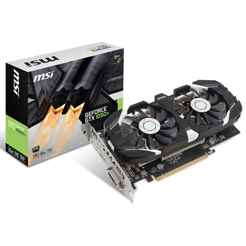 Descripción MSI GeForce GTX 1050 Ti 4GT OC. Familia de procesadores de gráficos: NVIDIA, Procesador gráfico: GeForce GTX 1050 Ti, Máxima resolución: 7680 x 4320 Pixeles. Gráficos discretos memoria del adaptador: 4 GB, Tipo de memoria de adaptador gráfico: GDDR5, Ancho de datos: 128 bit. Tipo de interfaz: PCI Express x16 3.0, Versión HDMI: 2.0, Versión de DisplayPort: 1.4. Versión DirectX: 12.0, Versión OpenGL: 4.5. Tipo de enfriamiento: Activo, Color del producto: Negro, Gris