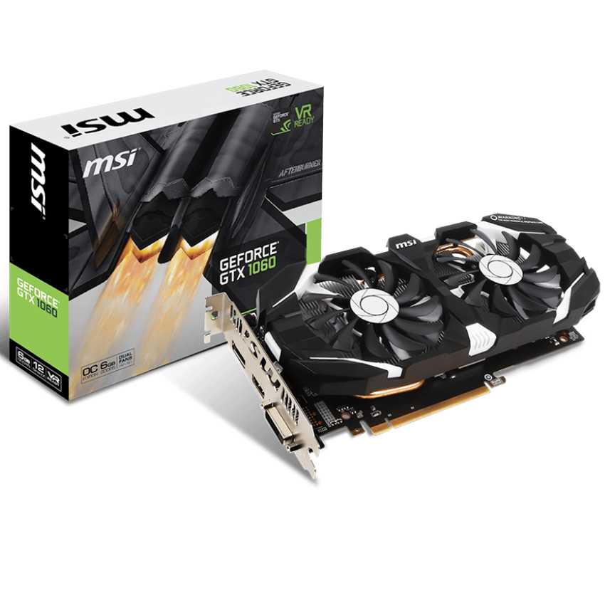 Descripción MSI GeForce GTX 1060 6GT OC. Familia de procesadores de gráficos: NVIDIA, Procesador gráfico: GeForce GTX 1060, Frecuencia del procesador: 1544 MHz. Gráficos discretos memoria del adaptador: 6 GB, Tipo de memoria de adaptador gráfico: GDDR5, Ancho de datos: 192 bit. Tipo de interfaz: PCI Express x16 3.0, Versión HDMI: 2.0, Versión de DisplayPort: 1.4. Versión DirectX: 12.0, Versión OpenGL: 4.5. Tipo de enfriamiento: Activo, Factor de forma: ATX, Color del producto: Negro