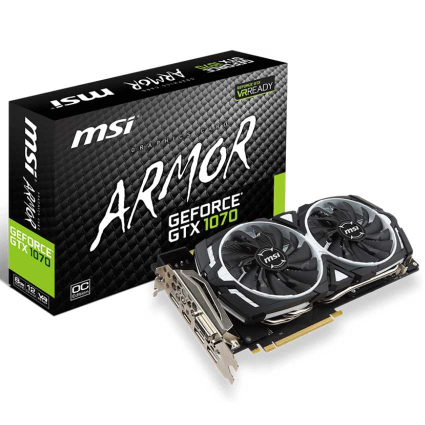 Descripción MSI V330-003R. Familia de procesadores de gráficos: NVIDIA, Procesador gráfico: GeForce GTX 1070, Máxima resolución: 7680 x 4320 Pixeles. Gráficos discretos memoria del adaptador: 8 GB, Tipo de memoria de adaptador gráfico: GDDR5, Ancho de datos: 256 bit. Tipo de interfaz: PCI Express x16 3.0, Versión HDMI: 2.0, Versión de DisplayPort: 1.4. Versión DirectX: 12.0, Versión OpenGL: 4.5. Tipo de enfriamiento: Activo, Color del producto: Negro, Color blanco