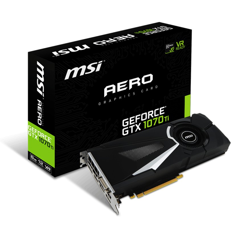 Descripción MSI GeForce GTX 1070 Ti AERO 8G. Familia de procesadores de gráficos: NVIDIA, Procesador gráfico: GeForce GTX 1070 Ti, Frecuencia del procesador: 1607 MHz. Gráficos discretos memoria del adaptador: 8 GB, Tipo de memoria de adaptador gráfico: GDDR5, Ancho de datos: 256 bit, Velocidad de memoria del reloj: 8008 MHz. Versión DirectX: 12.0, Versión OpenGL: 4.5, Dual Link DVI. Tipo de interfaz: PCI Express x16 3.0. Tipo de enfriamiento: Activo, Número de ventiladores: 1 Ventilador(es)