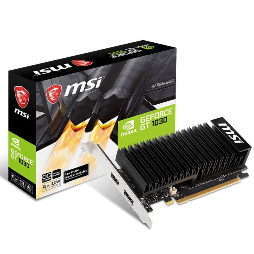 Especificaciones MODEL NAME: GeForce® GT 1030 2GHD4 LP OC GRAPHICS PROCESSING UNIT: NVIDIA® GeForce® GT 1030 INTERFACE: PCI Express 3.0 x16 (uses x4) CORE NAME: GP 108-310 CORES: 384 Units CORE CLOCKS: 1189 MHz / 1430 MHz MEMORY CLOCK SPEED: 2100 MHz MEMORY: 2GB DDR4 MEMORY BUS: 64-bit OUTPUT: DisplayPort / HDMI HDCP SUPPORT: 2.2 POWER CONSUMPTION: 20 W RECOMMENDED PSU: 300 W CARD DIMENSION(MM): 150 x 69 x 38 mm WEIGHT (CARD / PACKAGE): 304 g / 544 g AFTERBURNER OC: Y DIRECTX VERSION SUPPORT: 12 OPENGL VERSION SUPPORT: 4.5 MAXIMUM DISPLAYS: 2 ACCESSORIES: Low Profile Bracket x 1