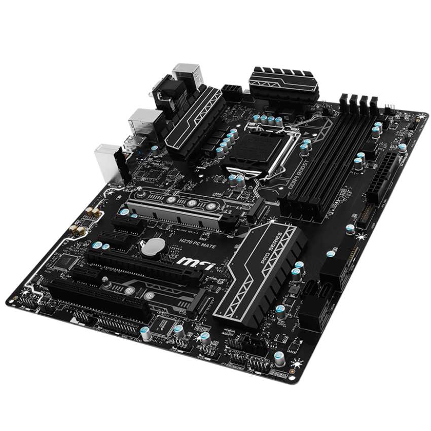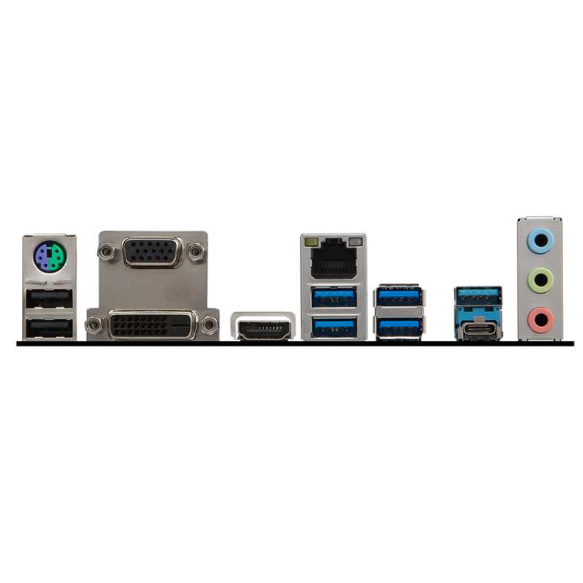 Especificaciones CPU support: Supports 7th / 6th Gen Intel® Core? i3/i5/i7 processors, and Intel® Pentium® and Celeron® processors CPU socket: LGA 1151 Chipset: Intel® H270 Chipset Graphics Interface: - 2 x PCI-E 3.0 x16 slots - 2-way CrossFire Display Interface: VGA, DVI-D, HDMI Memory support: 4 DIMMs, Dual Channel DDR4-2400 Expansion slots: 3 x PCI-E x1 slots, 1 x PCI slot SATA / M.2 / U.2: 6 x SATA 6Gb/s ports, 2 x M.2 slots Intel® Optane?: Intel® Optane? Memory Ready SATA RAID: RAID 0,1,5,10 USB 3.1 Gen2: 2 x USB 3.1 Gen2 (Type A+C) USB 3.1 Gen1: 8 x USB 3.1 Gen1 USB 2.0: 6 x USB 2.0 LAN: Intel® I219-V Gigabit LAN Audio: 7.1-Channel High Definition Audio Form Factor: ATX REAR CONNECTORS - PS/2 Device Port - VGA Port - HDMI - Intel® Gigabit LAN Port - LIGHTNING USB 3.1 Gen2 Type-A - HD Audio Connectors - USB 2.0 Device Port - DVI-D Port - USB 3.1 Gen1 Type-A - USB 3.1 Gen1 Type-A - LIGHTNING USB 3.1 Gen2 Type-C