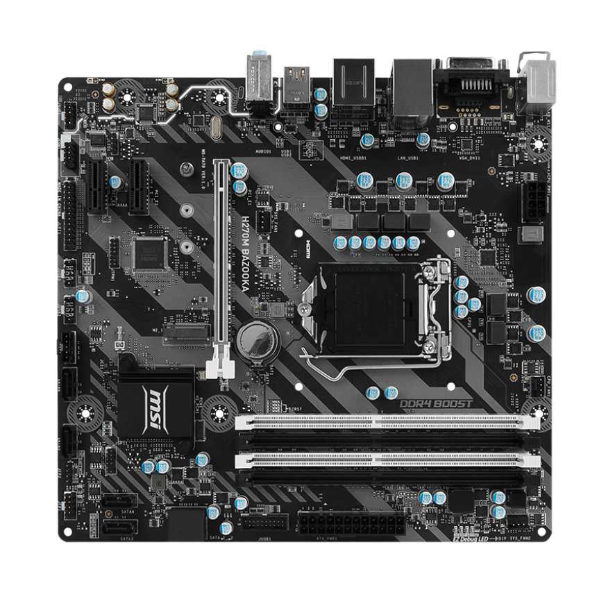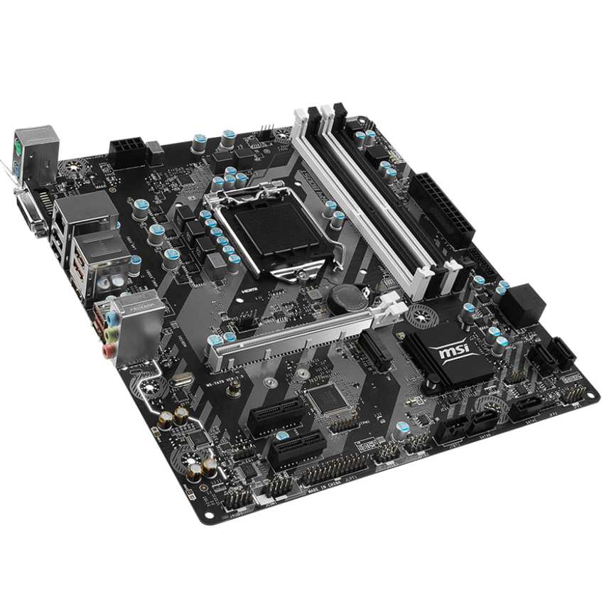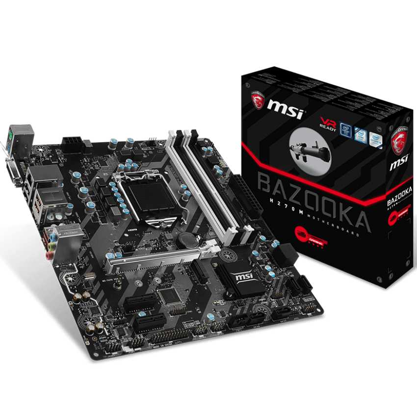 Especificaciones CPU support: Supports 7th / 6th Gen Intel® Core? i3/i5/i7 processors, and Intel® Pentium® and Celeron® processors CPU socket: LGA 1151 Chipset: Intel® H270 Chipset Graphics Interface: 1 x PCI-E 3.0 x16 slot Display Interface: DVI-D, HDMI Memory support: 4 DIMMs, Dual Channel DDR4-2400 Expansion slots: 2 x PCI-E 3.0 x1 slots SATA / M.2 / U.2: 6 x SATA 6Gb/s ports, 1 x M.2 slot Intel® Optane?: Intel® Optane? Memory Ready SATA RAID: RAID 0,1,5,10 USB 3.1 Gen1: 6 x USB 3.1 Gen1 (Type A+C) USB 2.0: 6 x USB 2.0 LAN: 10/100/1000Mbps LAN Audio: 7.1-Channel High Definition Audio Form Factor: M-ATX REAR CONNECTORS - PS/2 Device Port - Realtek® Gigabit LAN Port - VR Ready USB 3.1 Gen1 Ports - USB 3.1 Gen1 Ports - HD Audio Connectors - DVI-D Port - USB GAMING Device Port - HDMI - USB 3.1 Gen1 Type-C Ports