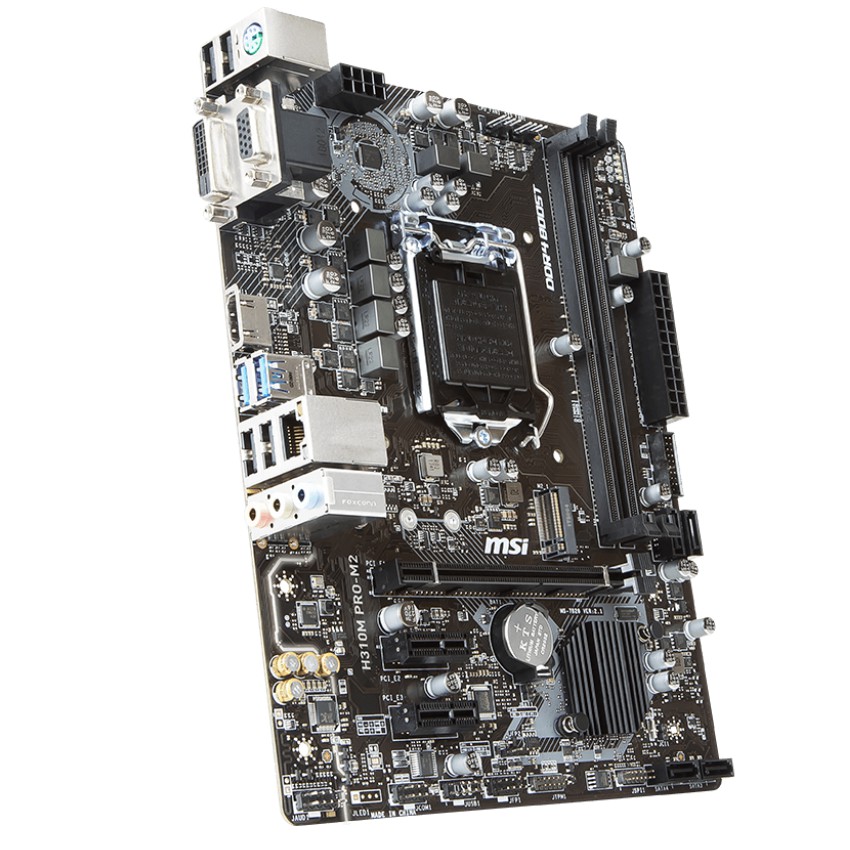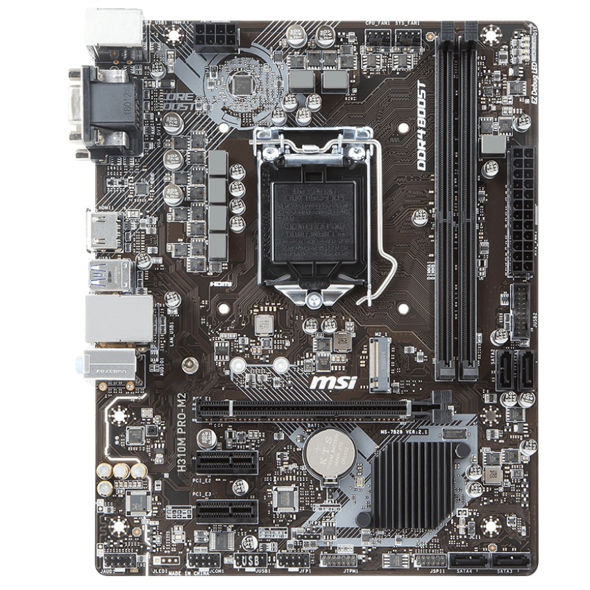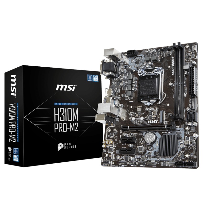 Descripción MSI H310M PRO-M2. tipos de memoria compatibles: DDR4-SDRAM, Tipo de ranuras de memoria: DIMM, Velocidades de reloj de memoria soportadas: 2133,2400,2666 MHz. Fabricante de procesador: Intel, Procesador compatible: Intel® Celeron®, Intel® Core? i3, Intel Core i5, Intel Core i7, Intel Core i9, Intel® Pentium®, Socket de procesador: LGA 1151 (Zócalo H4). Tipos de unidades de almacenamiento admitidas: Unidad de disco duro, SSD. Componente para: PC, Familia del chipset: Intel, Chipset: Intel® H310M. Tipos de BIOS: UEFI AMI