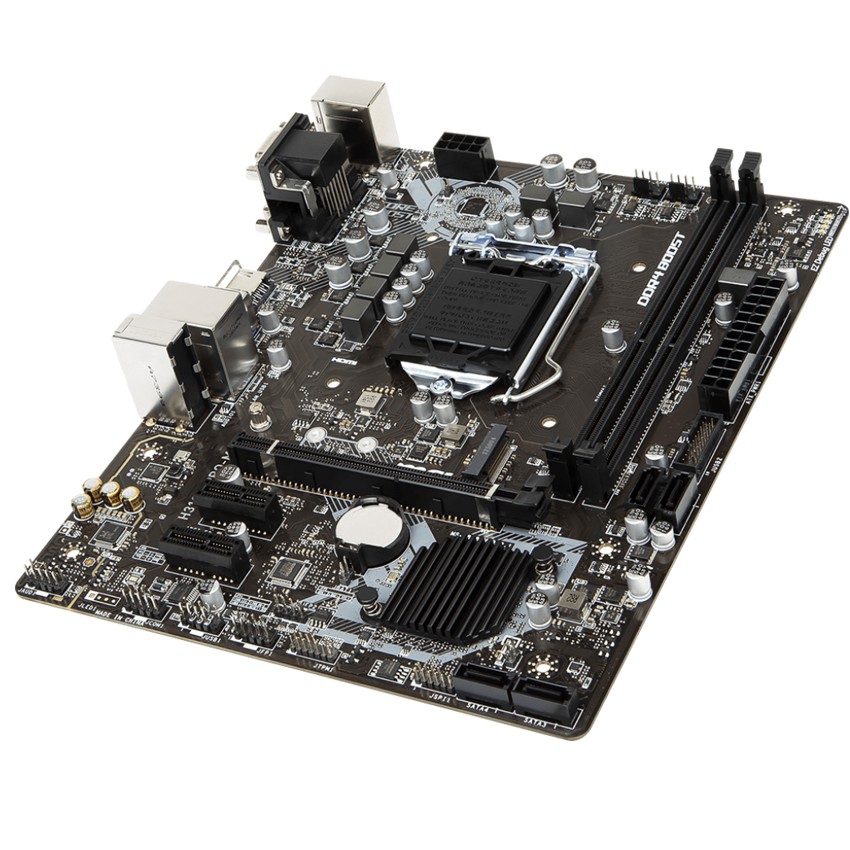 Especificaciones tipos de memoria compatibles: DDR4-SDRAM Tipo de ranuras de memoria: DIMM Velocidades de reloj de memoria soportadas: 2133,2400,2666 MHz Número de ranuras de memoria: 2 Canales de memoria: Dual No ECC: Si Capacidades del módulo de memoria soportadas: 16GB Memoria interna máxima: 32 GB Fabricante de procesador: Intel Procesador compatible: Intel® Celeron®, Intel® Core? i3, Intel Core i5, Intel Core i7, Intel Core i9, Intel® Pentium® Socket de procesador: LGA 1151 (Zócalo H4) Tipos de unidades de almacenamiento admitidas: Unidad de disco duro, SSD USB 2.0, conectores: 1 Conectores USB 3.0 ( 3.1 Gen 1 ): 1 Número de conectores SATA III: 4 Conector de audio en panel frontal: Si Conector de panel delantero: Si Conector de potencia ATX (24 pines): Si Conector de ventilador CPU: Si Número de conectores a ventilador de chasis: 1 Conector de instrusión a chasis: Si Conector de energía EPS (8-pin): Si Conector TPM: Si Cabecera de puerto serie: 1 Puerto serial via cabezal interno: Si Cantidad de puertos USB 2.0: 4 Cantidad de puertos tipo A USB 3.0 (3.1 Gen 1): 2 Ethernet LAN (RJ-45) cantidad de puertos: 1 Puerto de ratón PS/2: 1 Cantidad de puertos VGA (D-Sub): 1 Número de puertos HDMI: 1 Cantidad de puertos DVI-D: 1 Salidas para auriculares: 1 Micrófono, jack de entrada: Si Componente para: PC Familia del chipset: Intel Chipset: Intel® H310M Factor de forma: mini-ATX Canales de salida de audio: 7.1 canales Sistema operativo Linux soportado: Si Sistema operativo Windows soportado: Si PCI Express x1 (Gen 3.x) ranuras: 2 PCI Express x16 Gen (3.x) ranuras: 1 Tipos de BIOS: UEFI AMI Jumper Clear CMOS: Si Alimentación: ATX Ancho: 185 mm Profundidad: 230 mm Cables incluidos: SATA Guía de instalación rápida: Si Controladores incluidos: Si