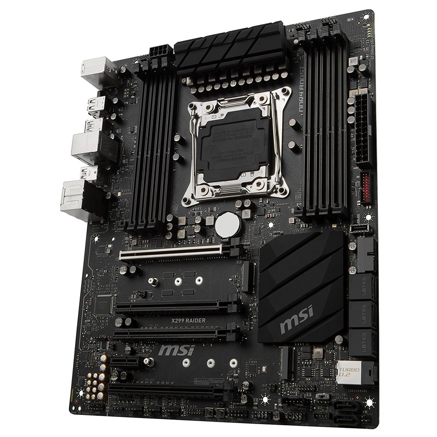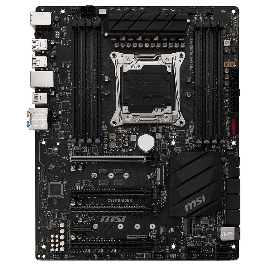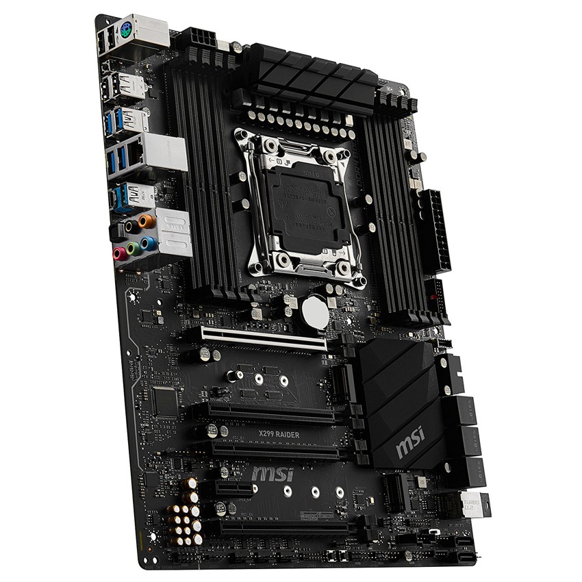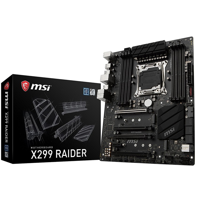 Descripción MSI X299 RAIDER. tipos de memoria compatibles: DDR4-SDRAM, Tipo de ranuras de memoria: DIMM, Velocidades de reloj de memoria soportadas: 2133,2400,2667,2800,2933,3000,3200,3333,3400,3466,3600,3733,3800,3866,4000,4133,4200,4266,4400,4500 MHz. Familia de procesador: Intel, Procesador compatible: Core i7,Core i7 Extreme Edition, Socket de procesador: LGA 2066. Controlador LAN: Intel I219-V, Tipo de interfaz ethernet: Gigabit Ethernet. Componente para: PC, Familia de componentes de tarjeta madre: Intel, Circuito integrado de tarjeta madre: Intel X299. Soporte para proceso paralelo: 2-Way SLI,CrossFire