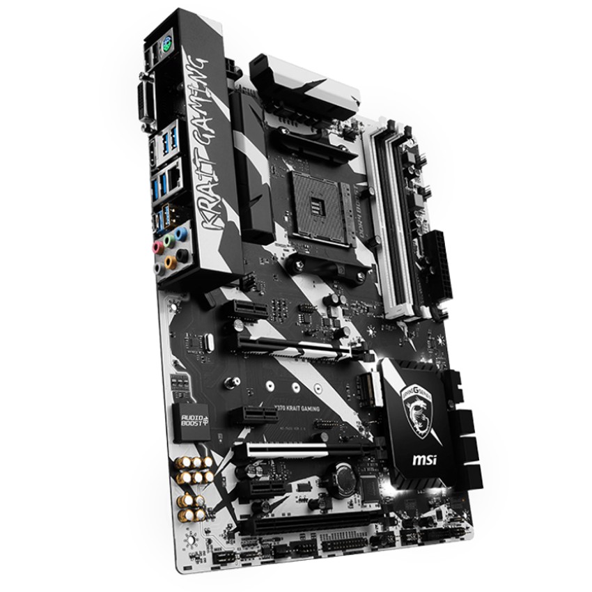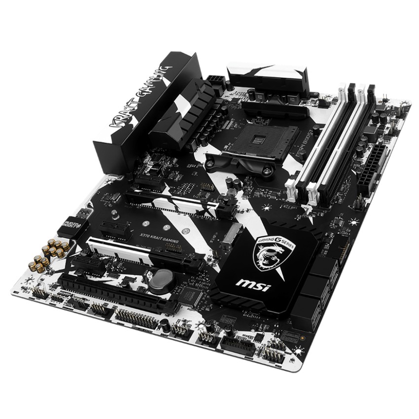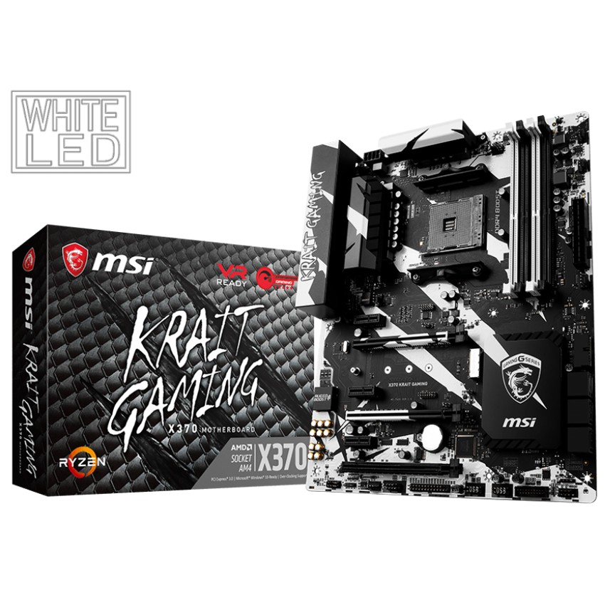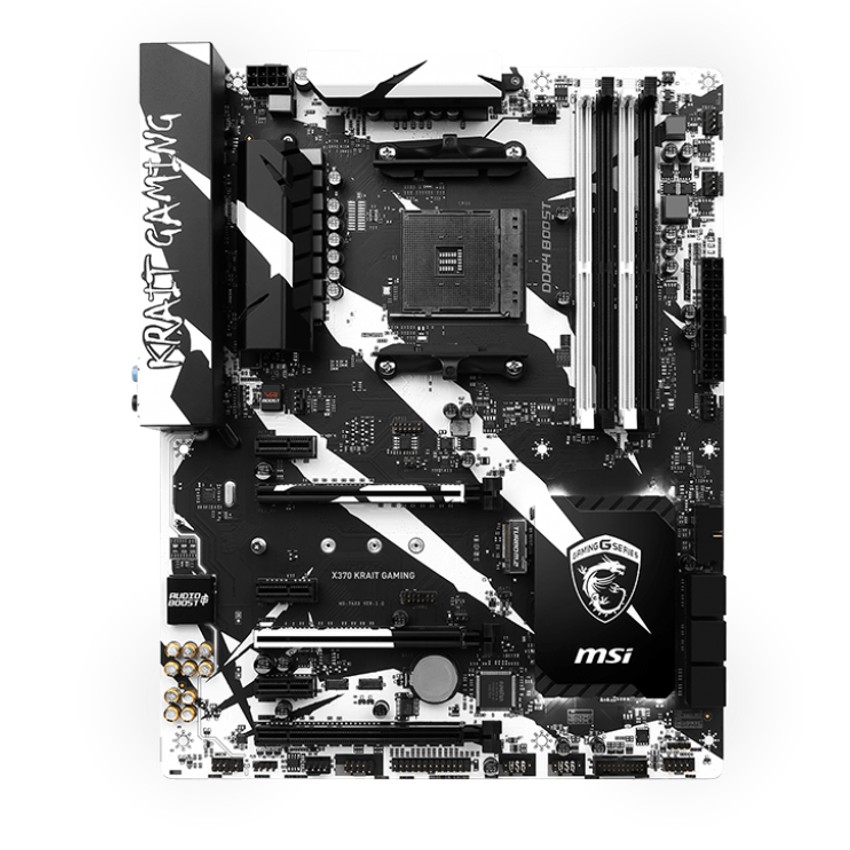Descripción MSI X370 KRAIT GAMING. tipos de memoria compatibles: DDR4-SDRAM, Tipo de ranuras de memoria: DIMM, Velocidades de reloj de memoria soportadas: 1866,2133,2400,2667,2933,3200 MHz. Familia de procesador: AMD, Procesador compatible: AMD A,Athlon,Ryzen, Socket de procesador: Socket AM4. Controlador LAN: Realtek RTL8111H, Tipo de interfaz ethernet: Ethernet rápido, Gigabit Ethernet. Componente para: PC, Familia de componentes de tarjeta madre: AMD, Circuito integrado de tarjeta madre: AMD X370. Soporte para proceso paralelo: 2-Way CrossFireX,2-Way SLI,3-Way CrossFireX
