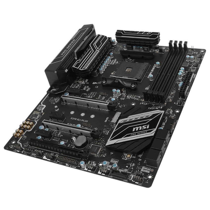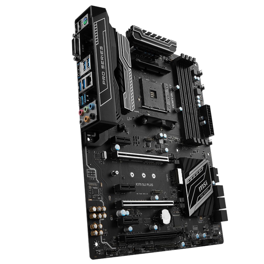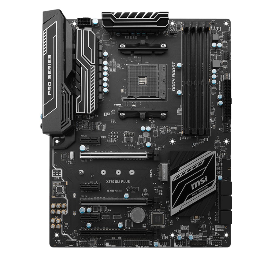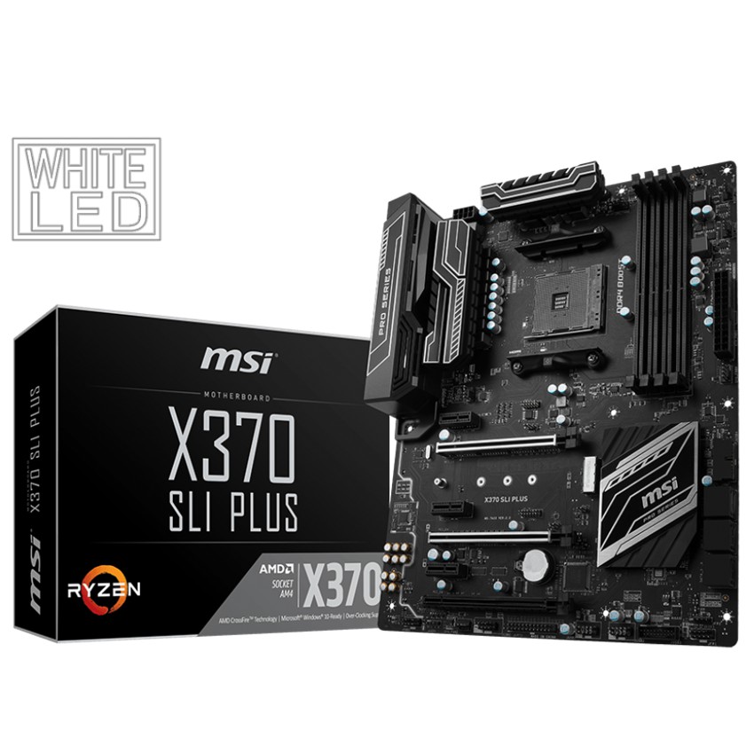 Descripción MSI X370 SLI PLUS. tipos de memoria compatibles: DDR4-SDRAM, Tipo de ranuras de memoria: DIMM, Velocidades de reloj de memoria soportadas: 1866,2133,2400,2667,2933,3200 MHz. Familia de procesador: AMD, Procesador compatible: AMD A,Athlon,Ryzen, Socket de procesador: Socket AM4. Controlador LAN: Realtek RTL8111H, Tipo de interfaz ethernet: Ethernet rápido, Gigabit Ethernet. Componente para: PC, Familia de componentes de tarjeta madre: AMD, Circuito integrado de tarjeta madre: AMD X370. Soporte para proceso paralelo: 2-Way CrossFireX,2-Way SLI,3-Way CrossFireX