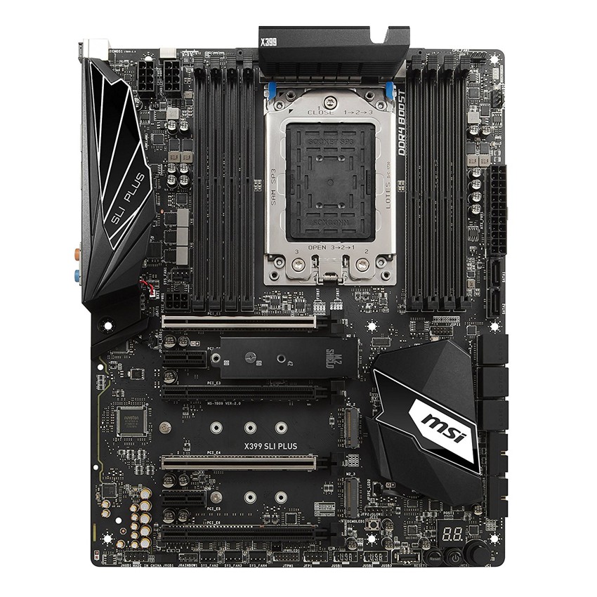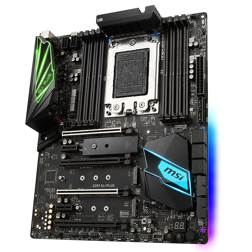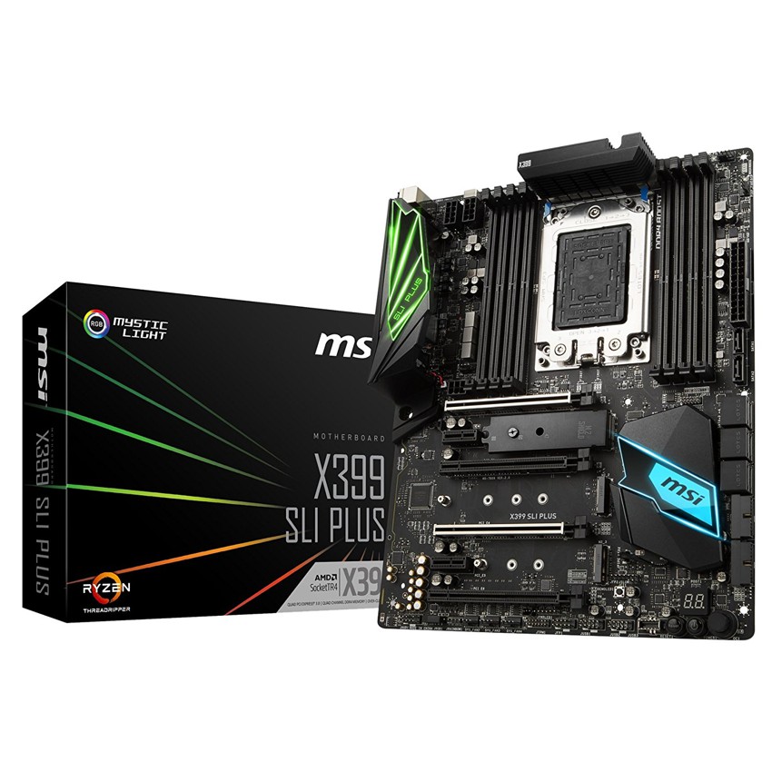 Descripción MSI X399 SLI PLUS. tipos de memoria compatibles: DDR4-SDRAM, Tipo de ranuras de memoria: DIMM, Velocidades de reloj de memoria soportadas: 2133,2400,2667,2800,2933,3066,3200,3333,3466,3600 MHz. Familia de procesador: AMD, Procesador compatible: Ryzen. Controlador LAN: Intel I211, Tipo de interfaz ethernet: Gigabit Ethernet. Componente para: PC, Familia de componentes de tarjeta madre: AMD, Circuito integrado de tarjeta madre: AMD X399. Soporte para proceso paralelo: 4-Way CrossFireX,4-Way SLI