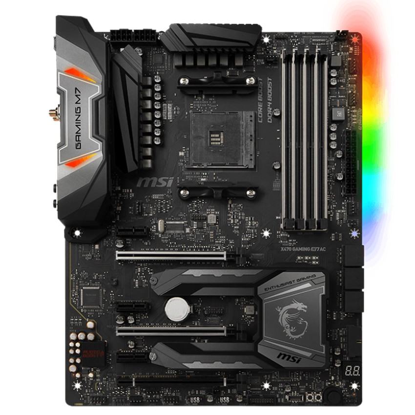 Especificaciones SOCKET: AM4 CPU (MAX SUPPORT): RYZEN 7 CHIPSET: AMD® X470 Chipset DDR4 MEMORY: 1866/ 2133/ 2400/ 2667(OC)/ 2933(OC)/ 3200(OC)/ 3600+ Mhz MEMORY CHANNEL: Dual DIMM SLOTS: 4 MAX MEMORY (GB): 64 PCI-EX16: 2 PCI-E GEN: Gen3(16,0) (8,8), Gen2(4) PCI-EX1: 3 SATAIII: 6 M.2 SLOT: 2 RAID: 0/1/10 TPM (HEADER): 1 LAN: 1x Killer E2500 Gigabit LAN controller USB 3.1 PORTS (FRONT): 1(Gen2, Type C), 4(Gen1, Type A) USB 3.1 PORTS (REAR): 1(Gen2, Type C), 1(Gen2, Type A), 4(Gen1, Type A) USB 2.0 PORTS (FRONT): 4 USB 2.0 PORTS (REAR): 2 AUDIO PORTS (REAR): Realtek® ALC1220 Codec DIRECTX: 12 FORM FACTOR: ATX SLI: Y