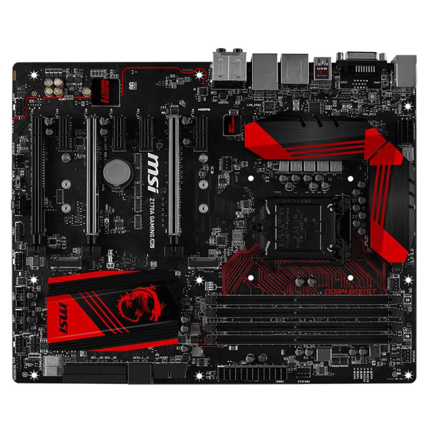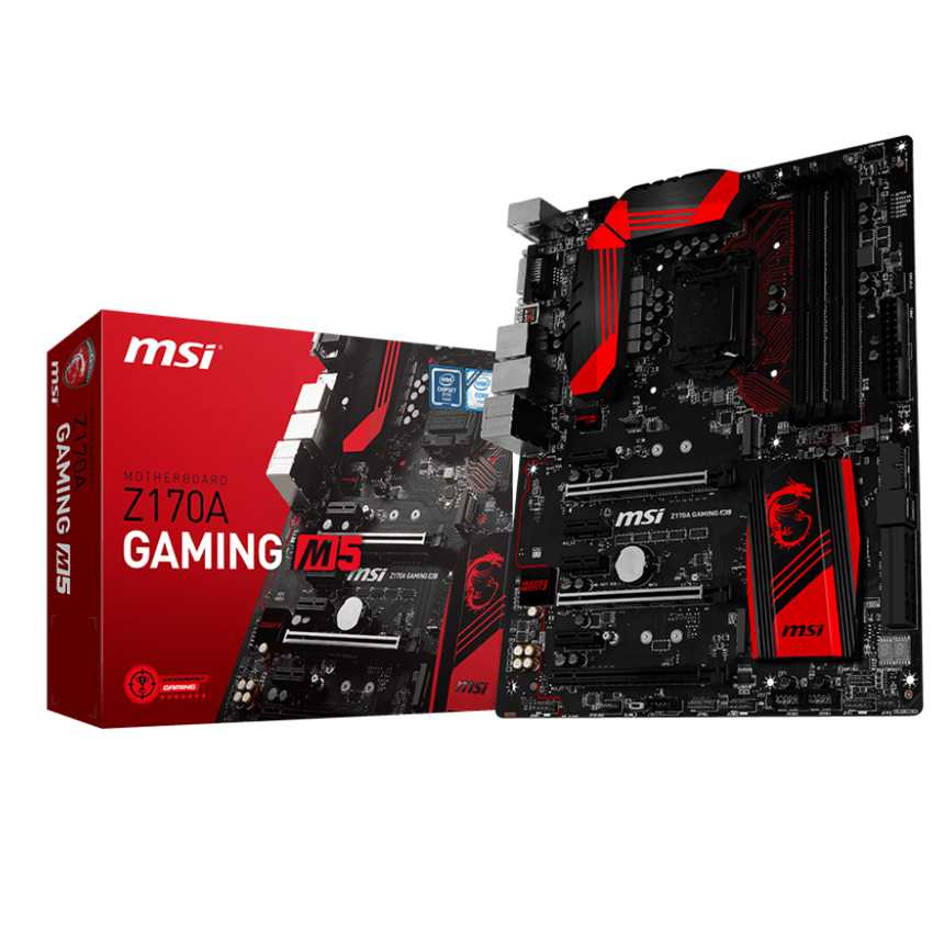Descripción MSI Z170A GAMING M5. tipos de memoria compatibles: DDR4-SDRAM, Tipo de ranuras de memoria: DIMM, Canales de memoria: Dual. Familia de procesador: Intel, Procesador compatible: Celeron, Core i3, Core i5, Core i7, Pentium, Socket de procesador: LGA1151. Interfaces de unidad de disco duro soportadas: M.2, Serial ATA III. Tipo de interfaz ethernet: Gigabit. Componente para: PC, Familia de componentes de tarjeta madre: Intel, Circuito integrado de tarjeta madre: Intel Z170