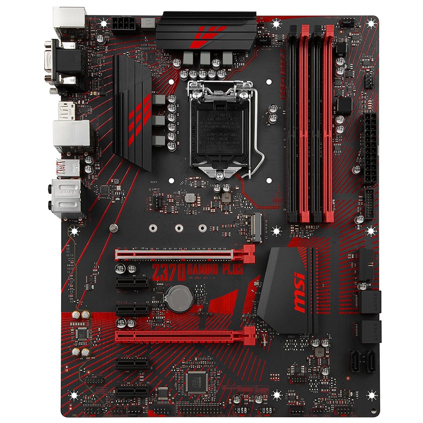 Descripción MSI Z370 GAMING PLUS. tipos de memoria compatibles: DDR4-SDRAM, Tipo de ranuras de memoria: DIMM, Velocidades de reloj de memoria soportadas: 2133,4000 MHz. Familia de procesador: Intel, Procesador compatible: Celeron,Core i3,Core i5,Core i7,Pentium, Socket de procesador: LGA 1151 (Socket H4). Interfaces de disco de almacenamiento soportados: M.2, Serial ATA III. Controlador LAN: Intel I219-V, Tipo de interfaz ethernet: Gigabit Ethernet. Componente para: PC, Familia de componentes de tarjeta madre: Intel, Tarjeta madre, factor de forma: ATX