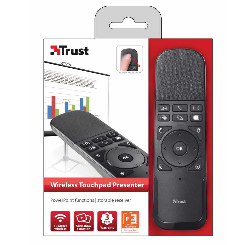 Descripción Panel táctil para un mayor control del ratón. Funciones especiales para PowerPoints y presentaciones de diapositivas. Función exclusiva de subrayado de bolígrafo. Botón del ratón izquierdo y derecho.