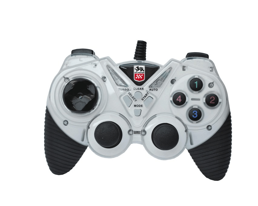 Mando para juegos con 2 joysticks analógicos y función de vibración. Diseño remodelado en color blanco.
